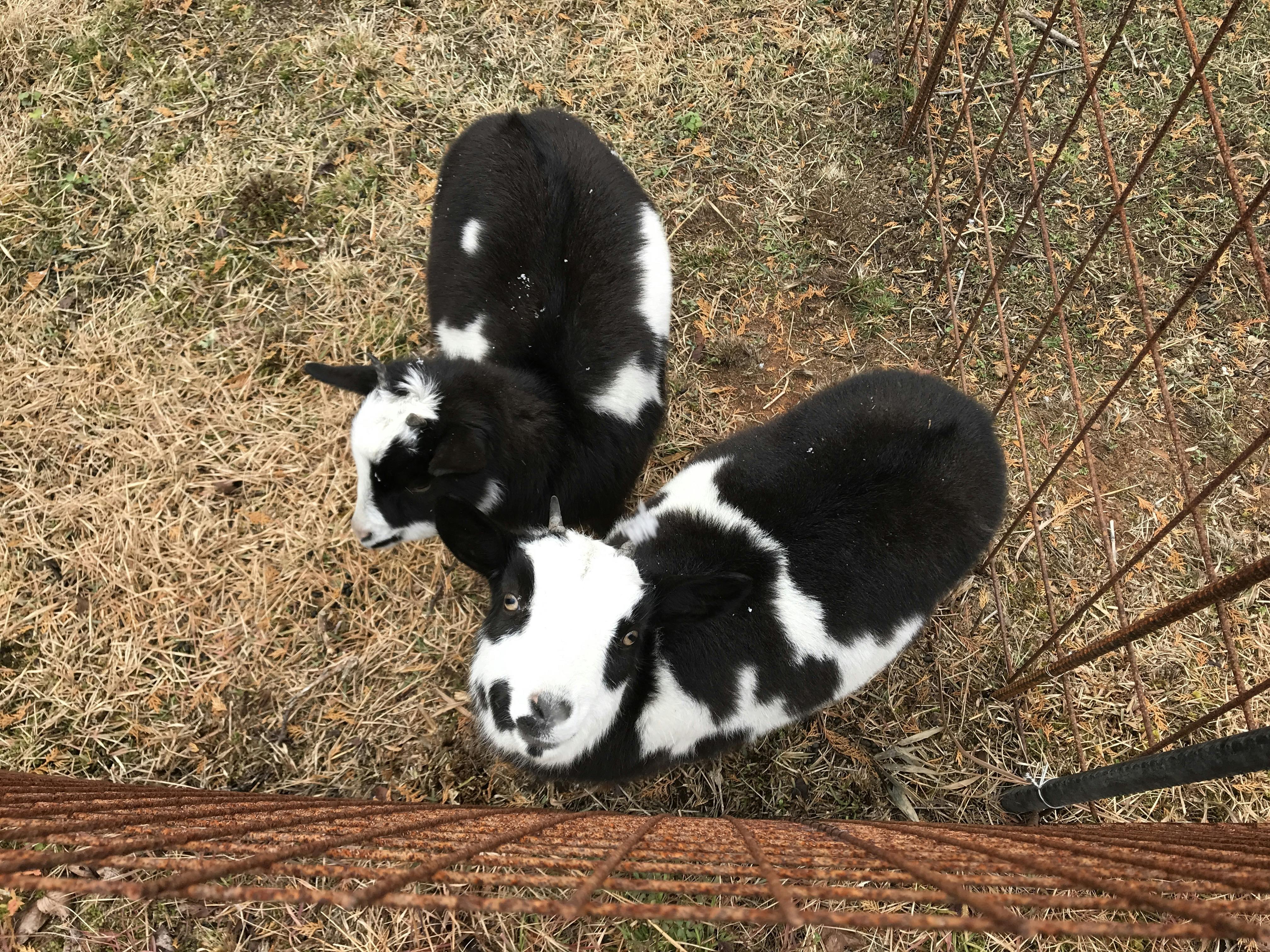 鳥巣の山羊、丸々肥えとる。