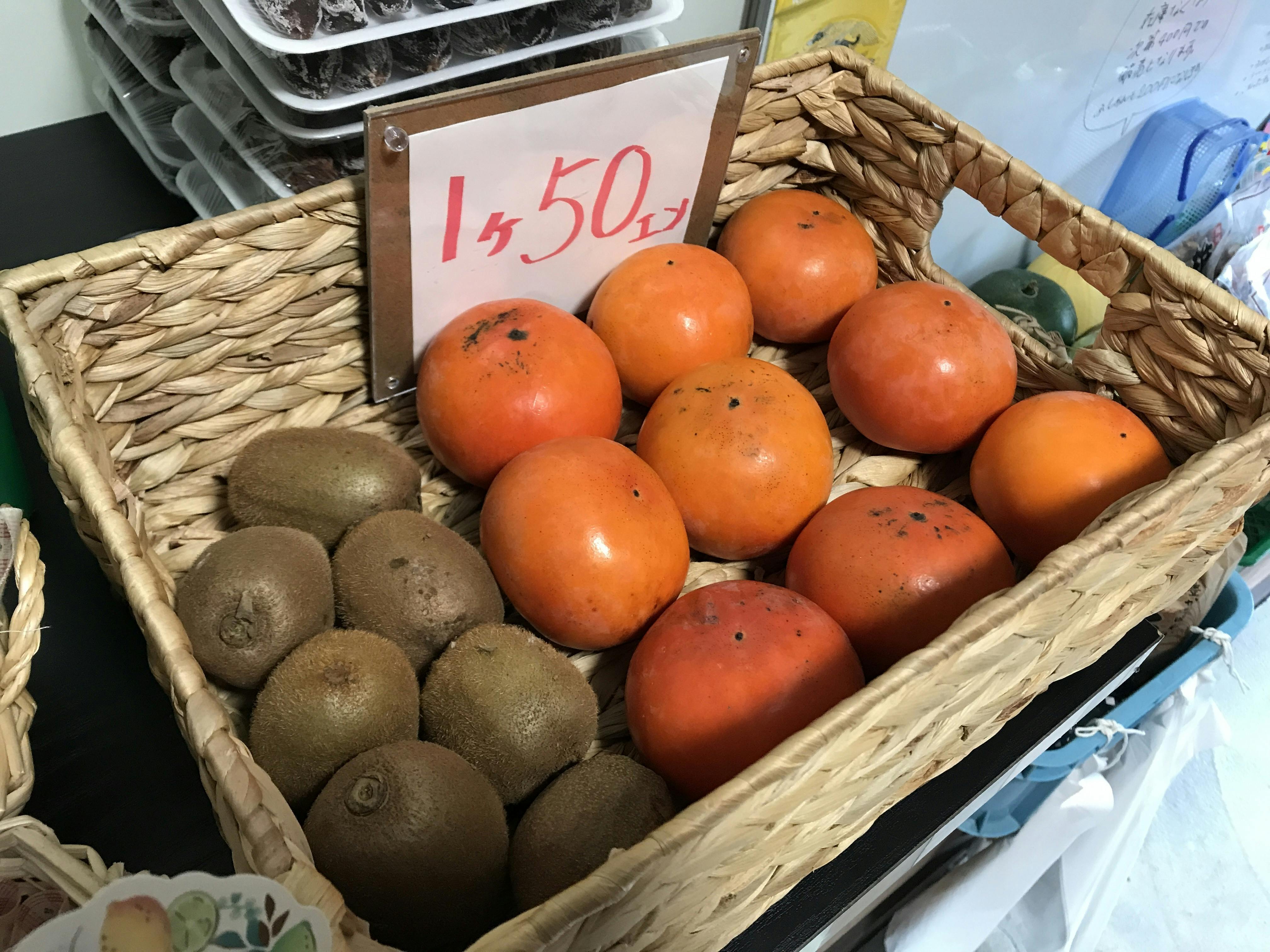 りんごの販売は終了しました。ニューフェイスとして柿とキウイやってきました。干し葡萄も売れてます。