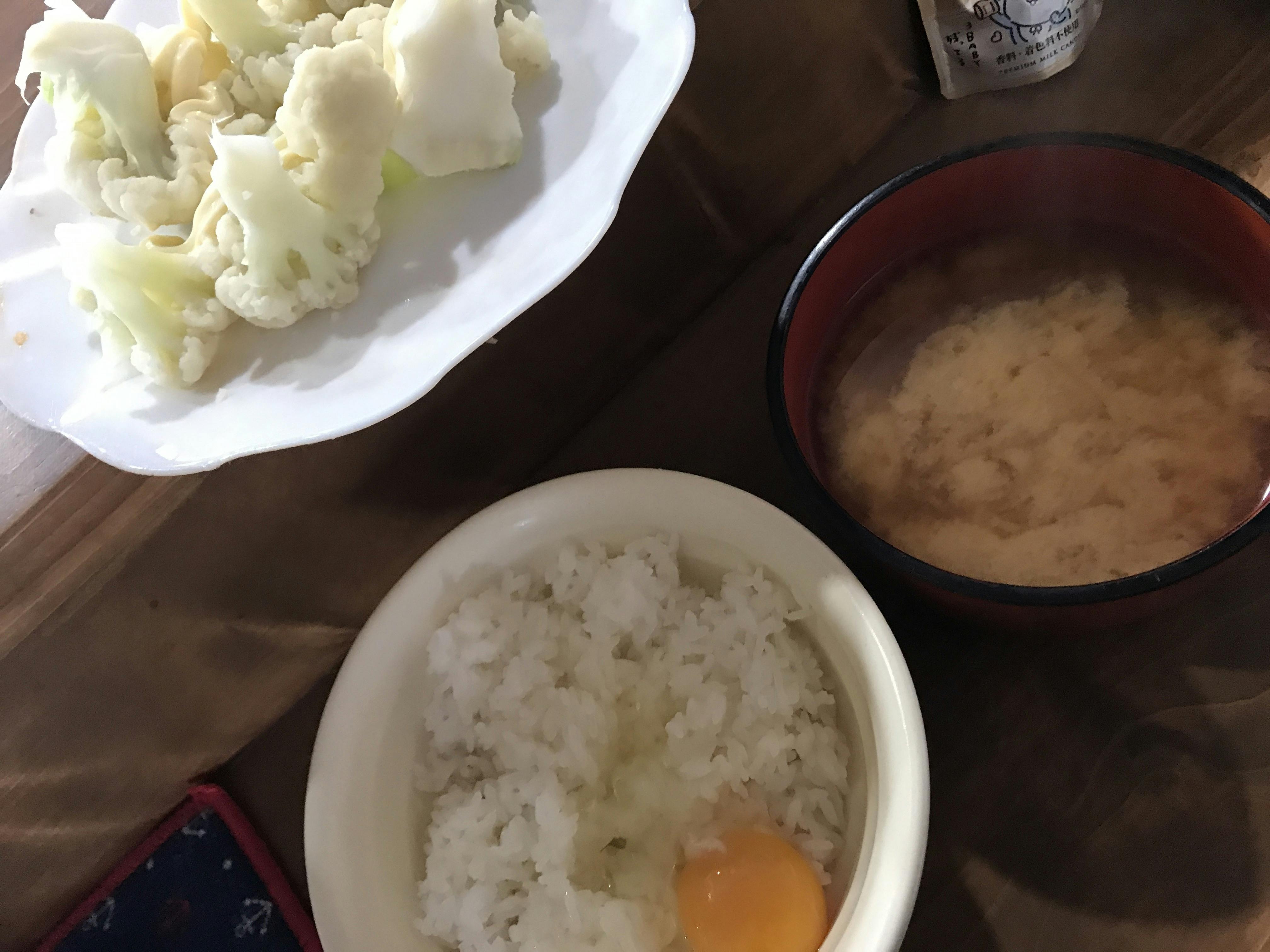 どんぶり飯とどんぶり味噌汁でお腹いっぱい食べてます。