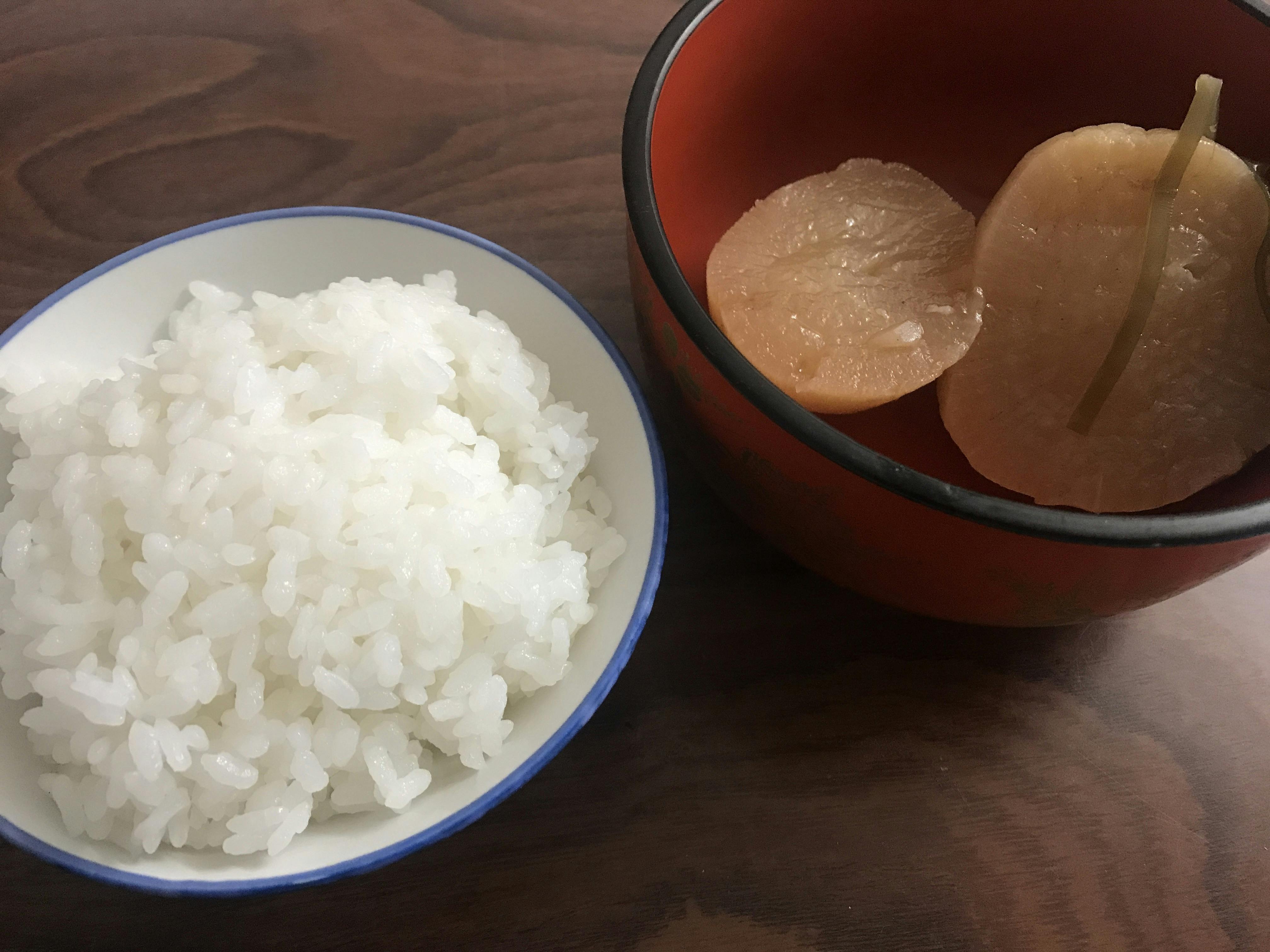 おでんの大根と白米。このざっとしたまかない飯を楽しみにしてくれてる人が結構います。