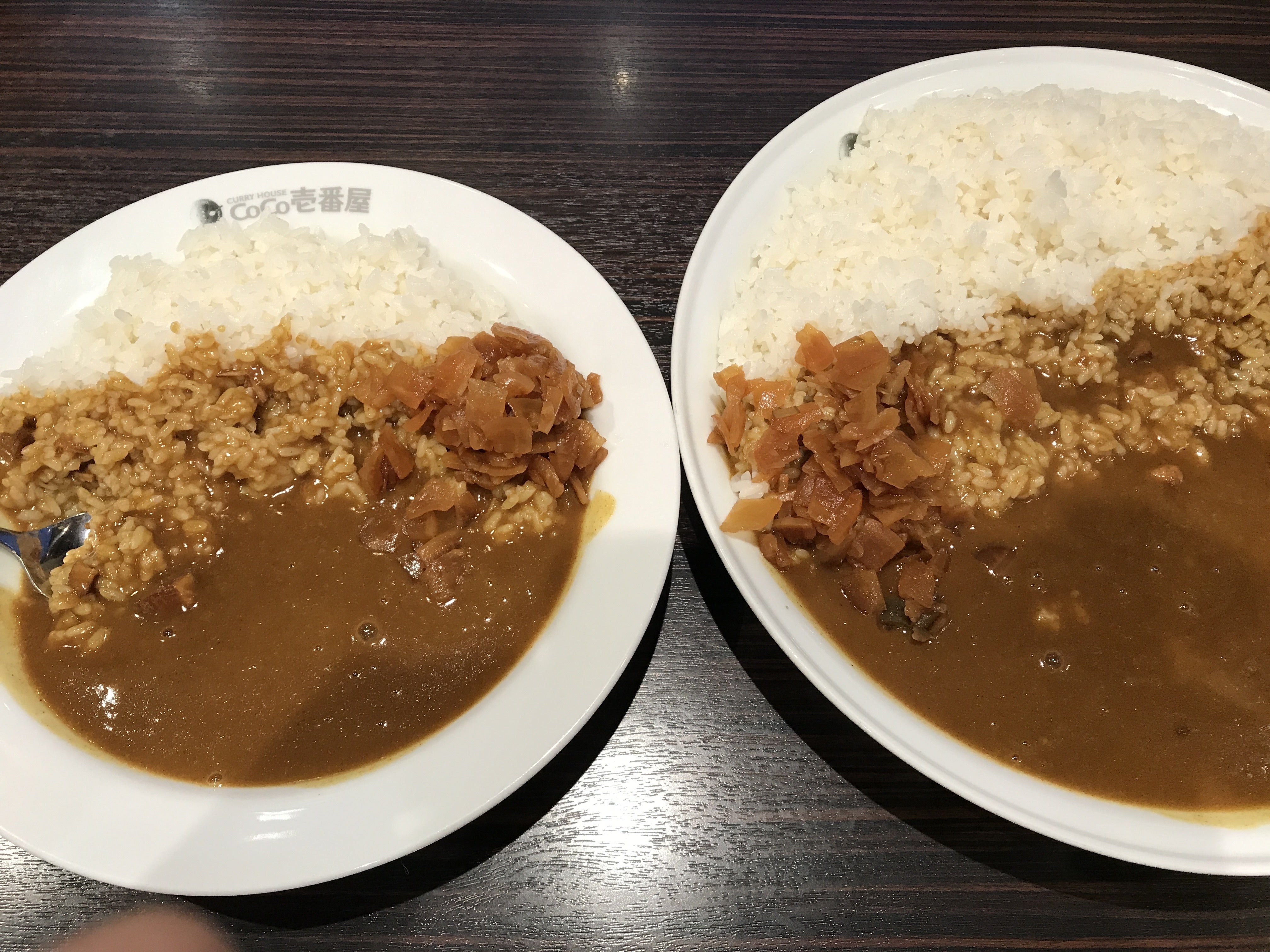 あんまからの久しぶりのカレーディナー。左が私の300g。右はツレの600g