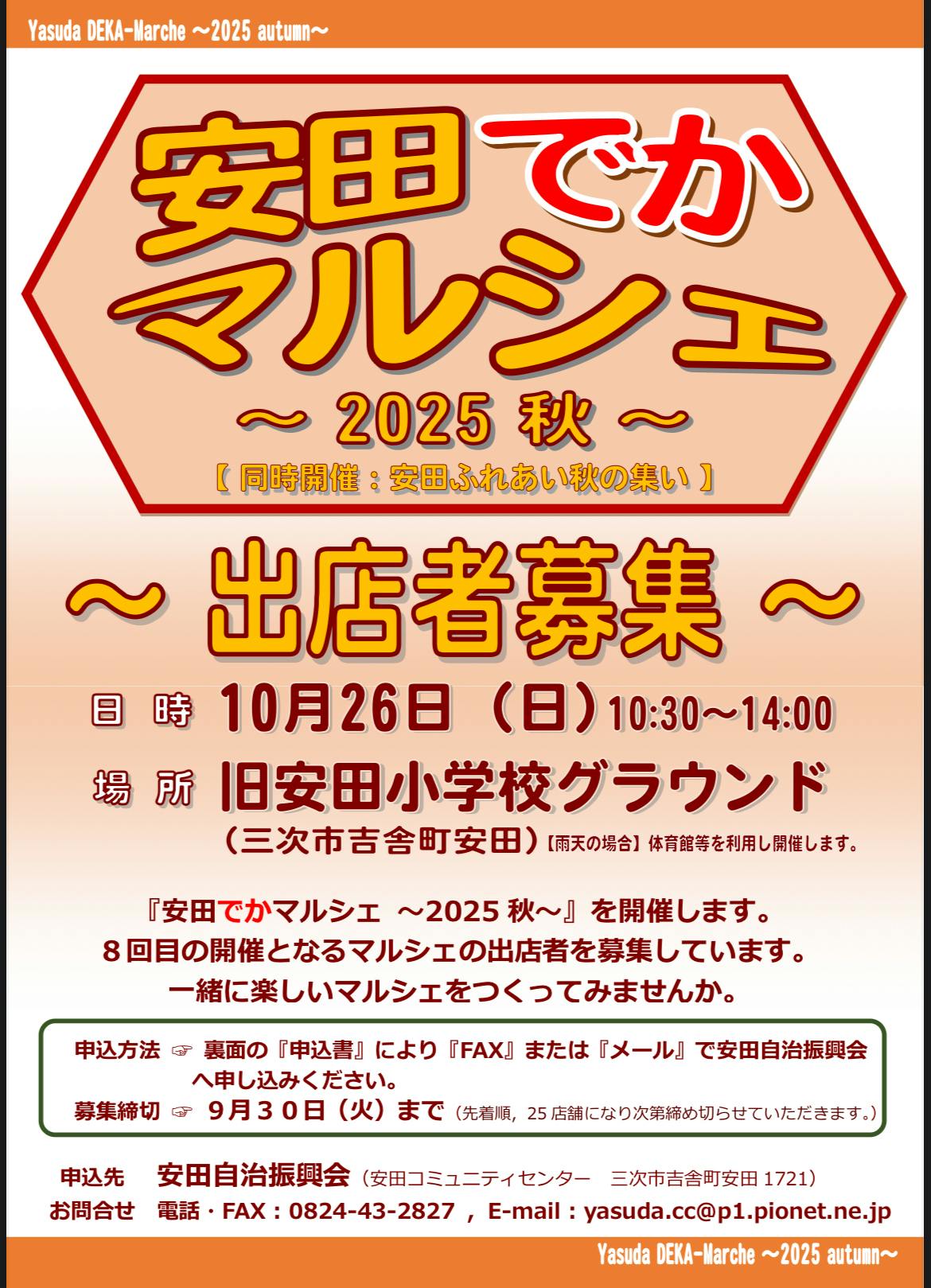 月に2回の安田マルシェではなく年に2回の安田でかマルシェの開催が発表されました。ハロプレも募集始まりました。