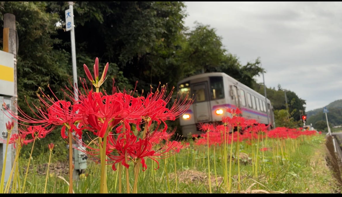 昨日はたくさんの方がカフェ前の彼岸花の撮影されていました。見頃は短いので列車通過に併せてお越しになってみてください。カフェオープンします。葡萄もきます
