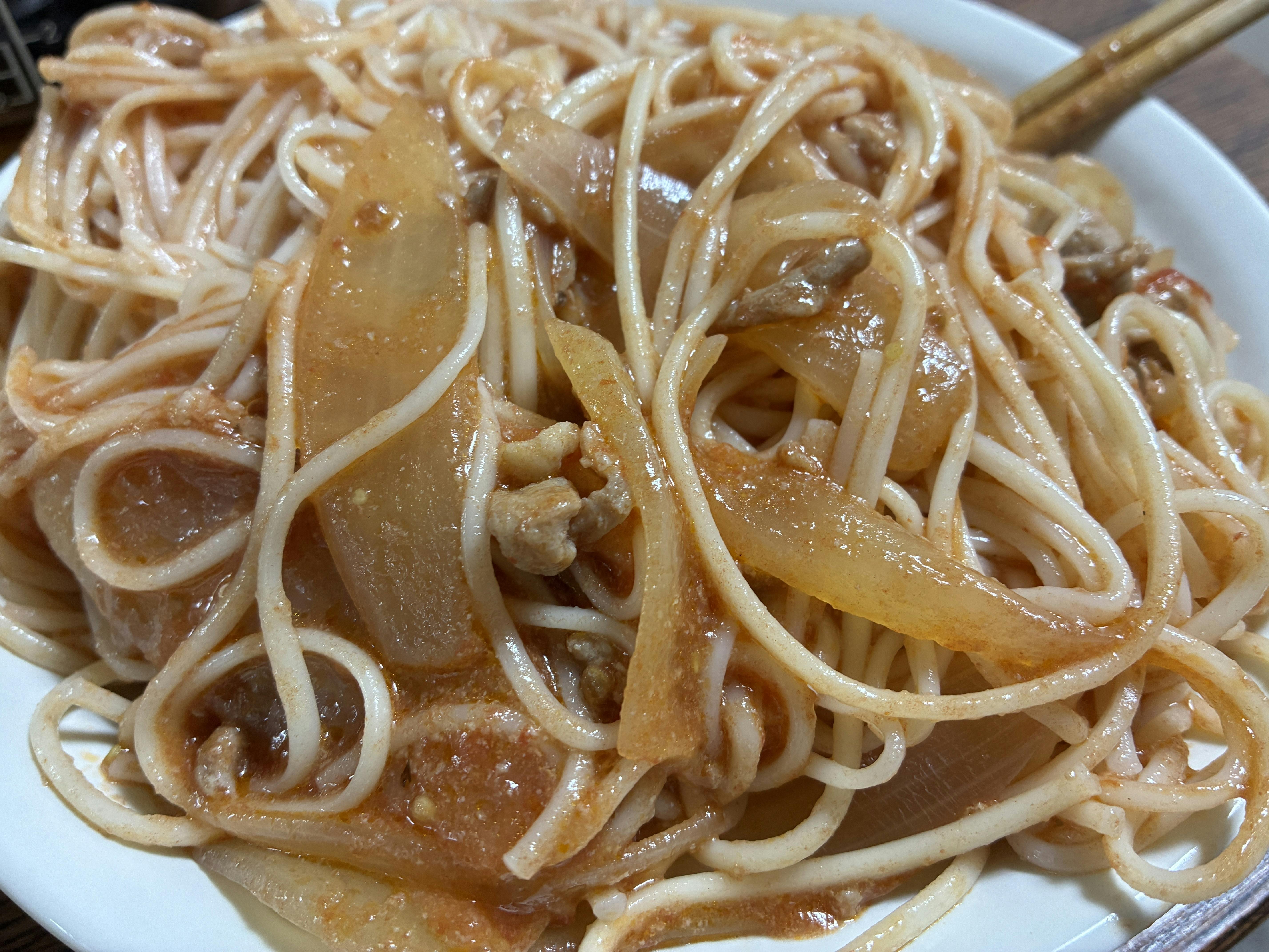 みちのくプロレスでも大人気私のまかない飯、本日は半田素麺のトマトソース