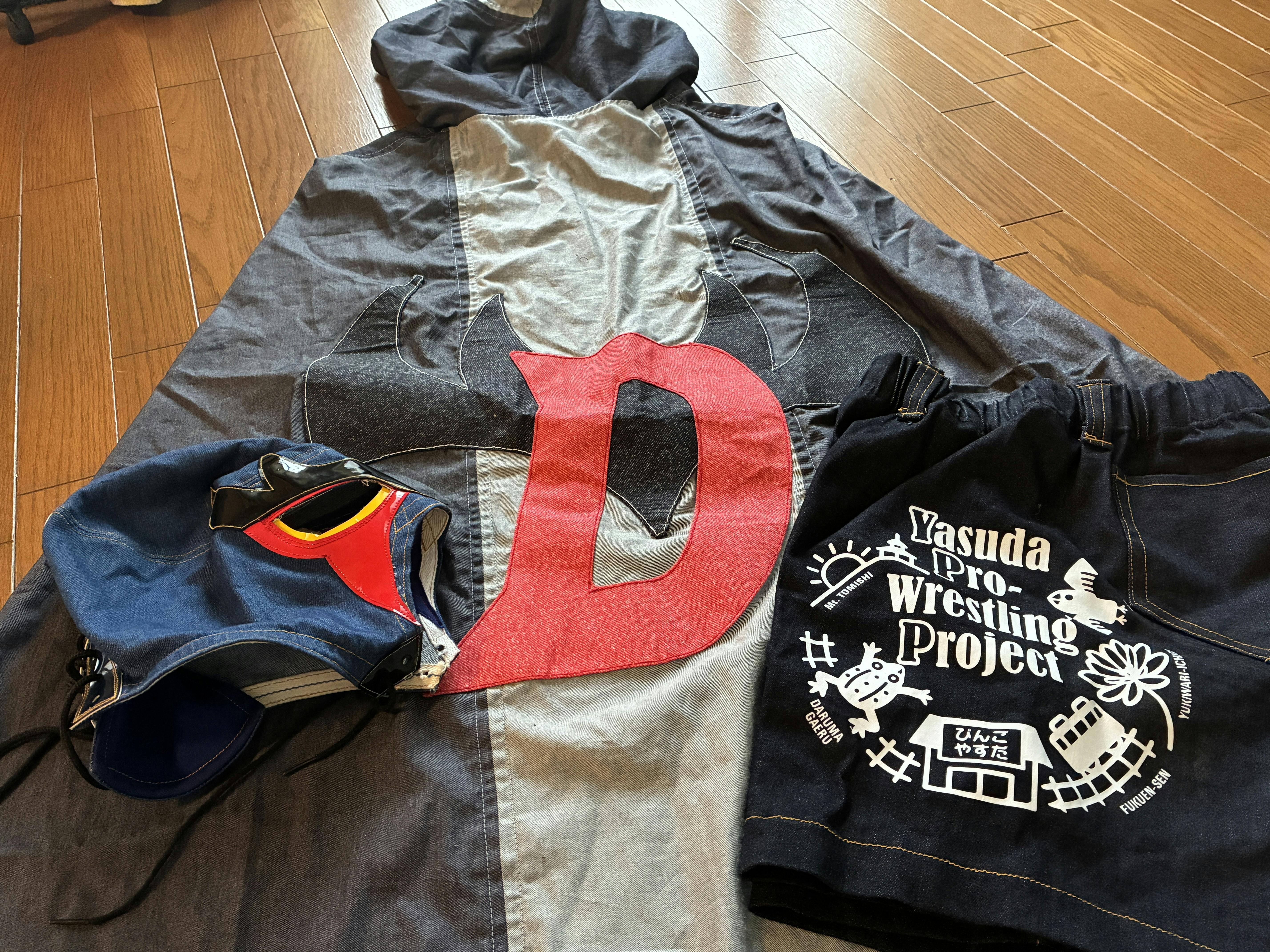 みちのくプロレスびんご安田大会無事開催できました。試合後デニムマンのマスク、コスチューム、マントが。どこに行ったんだデニムマン。誰なんだ君はデニムマン。また会えるの待ってる。
