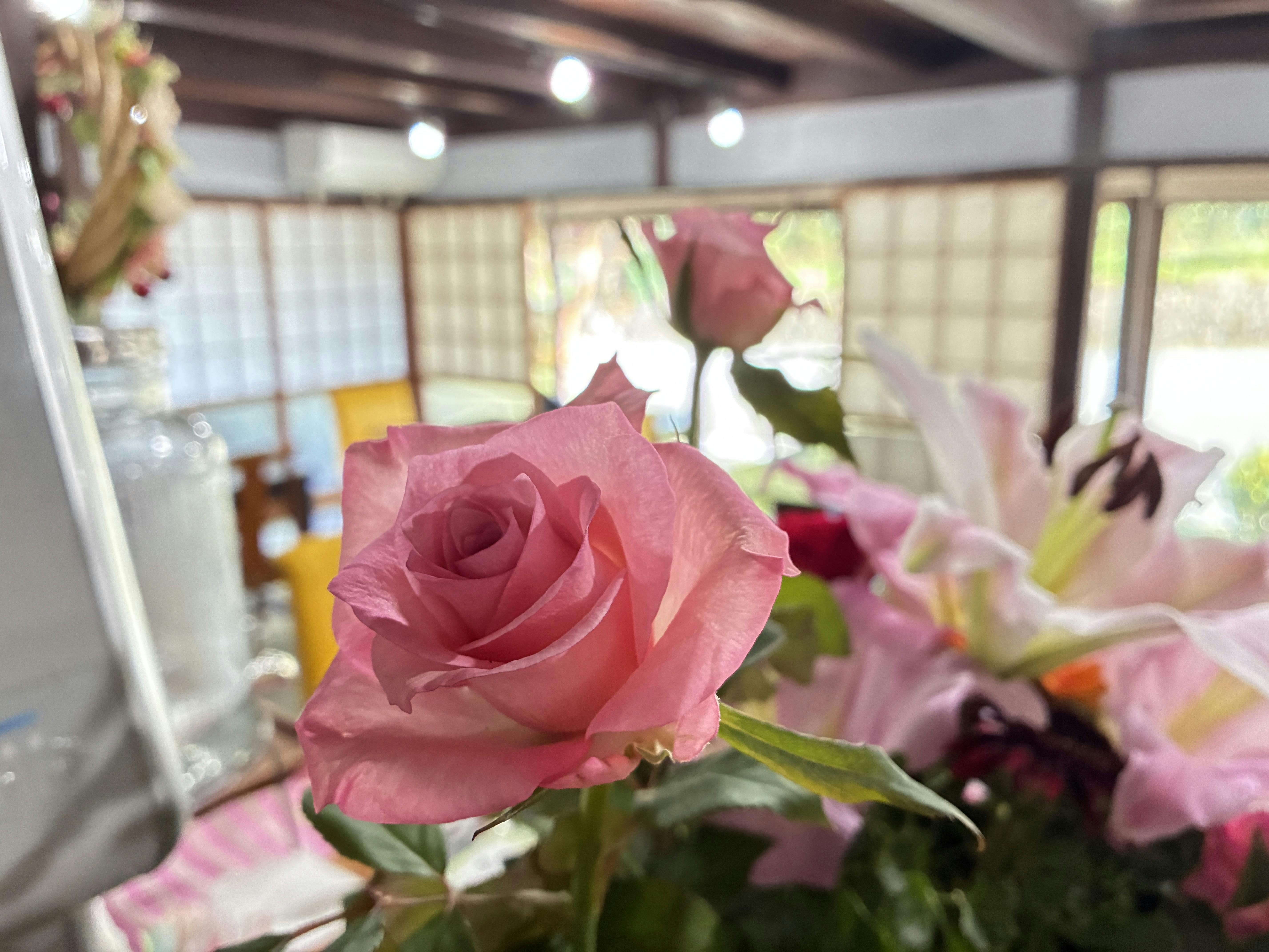 花のお裾分けいただきました。カフェ花と一緒にお迎えしています♪