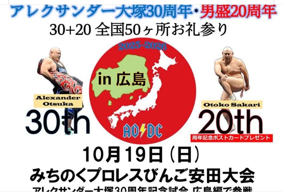 みちのくプロレスびんご安田大会でアレクの周年お祝いできました。記念のハガキ預かってます。先着順で差し上げますのでお申し出ください。