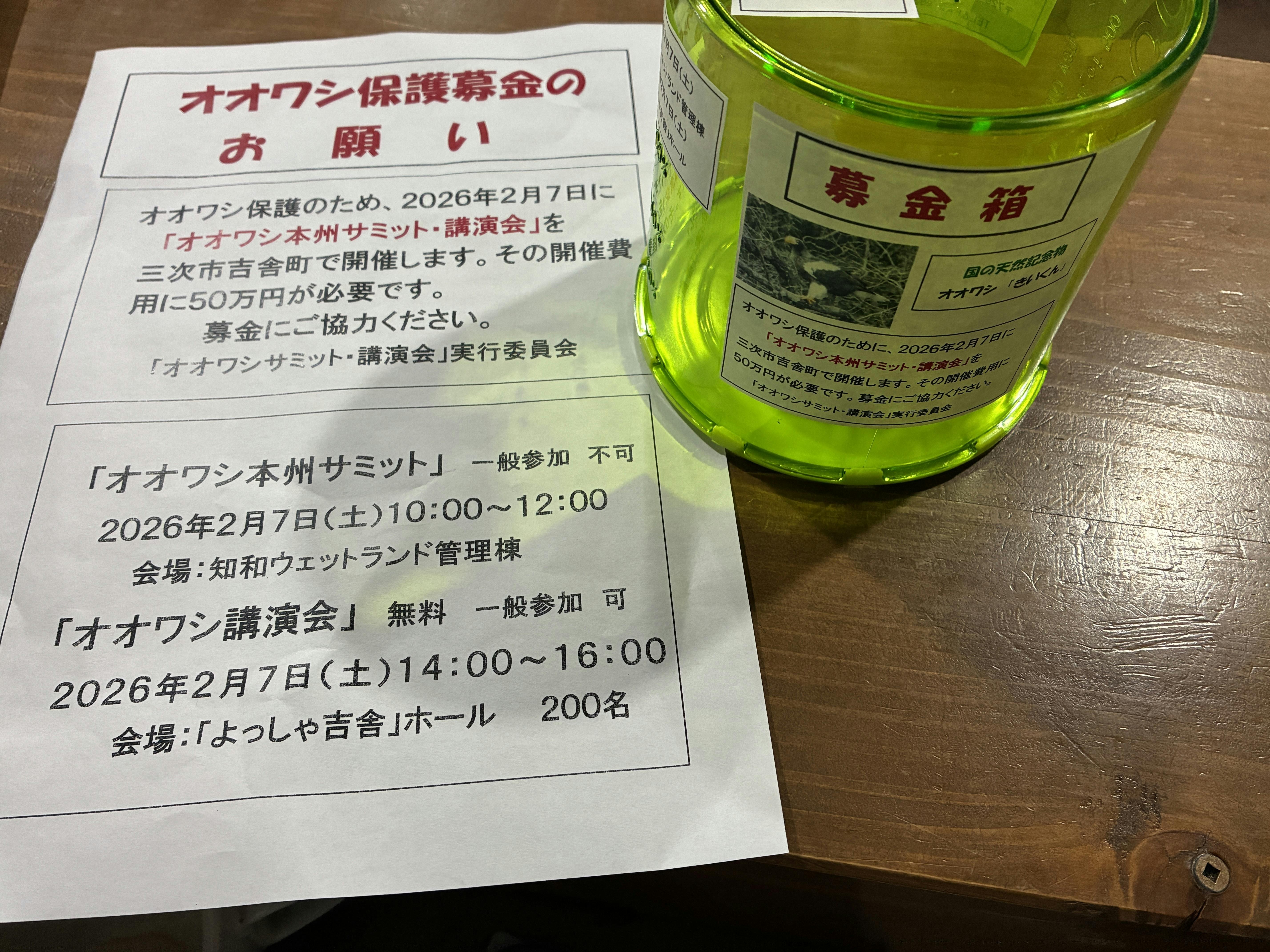 来年開催されるオオワシサミット・講演会の募金されました。私もスタッフとして活動しております,。野鳥山野草などお好きな方、是非ご協力お願いします
