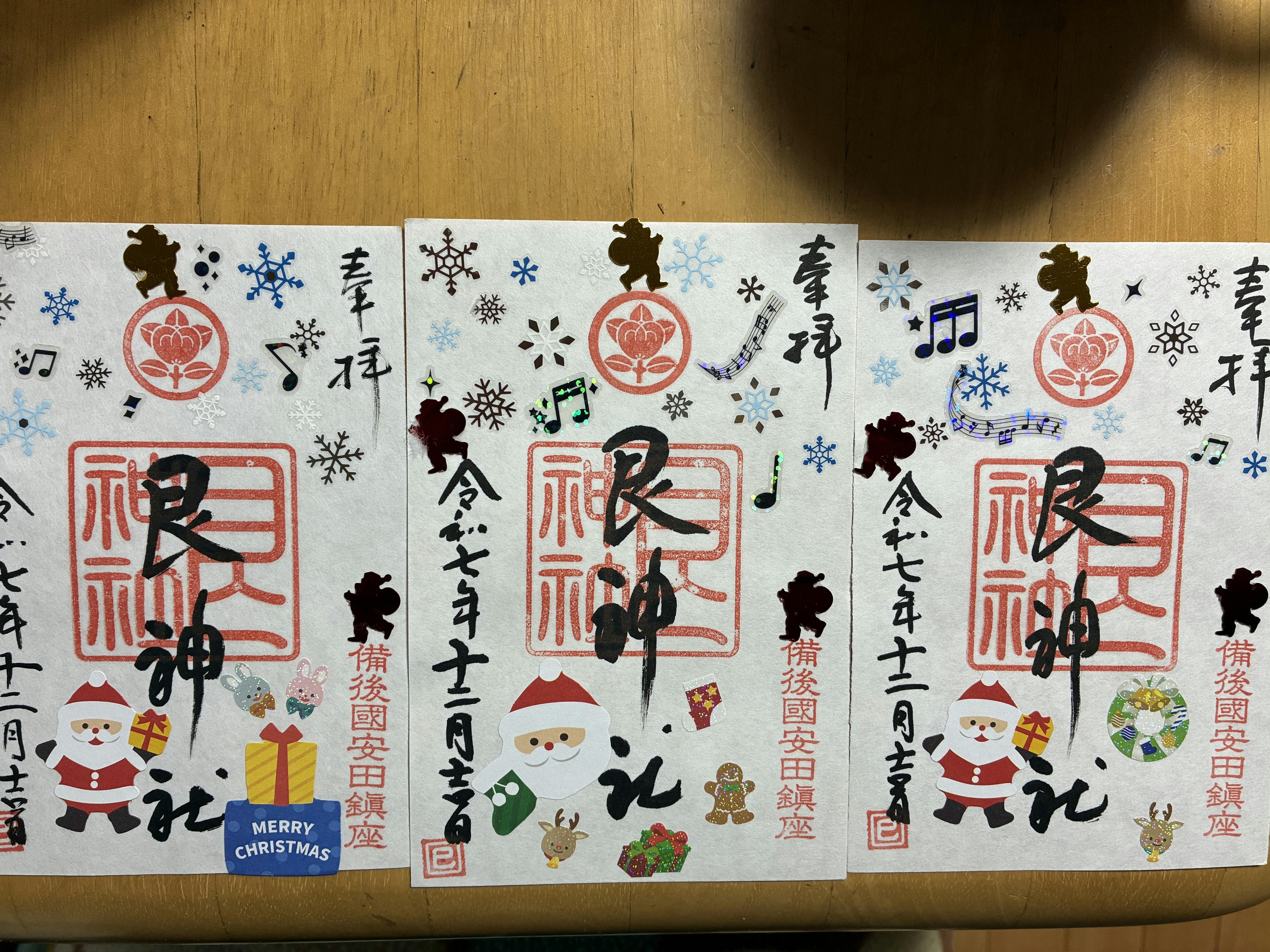 備後国艮神社12月の御朱印はクリスマスの楽しい雰囲気を出してみました。艮神社にて置き紙で対応しています。なくなっていましたらお手数ですが花笑カフェにお立ち寄りもしくはご連絡いただき後日お渡しさせてください。よろしくお願いします