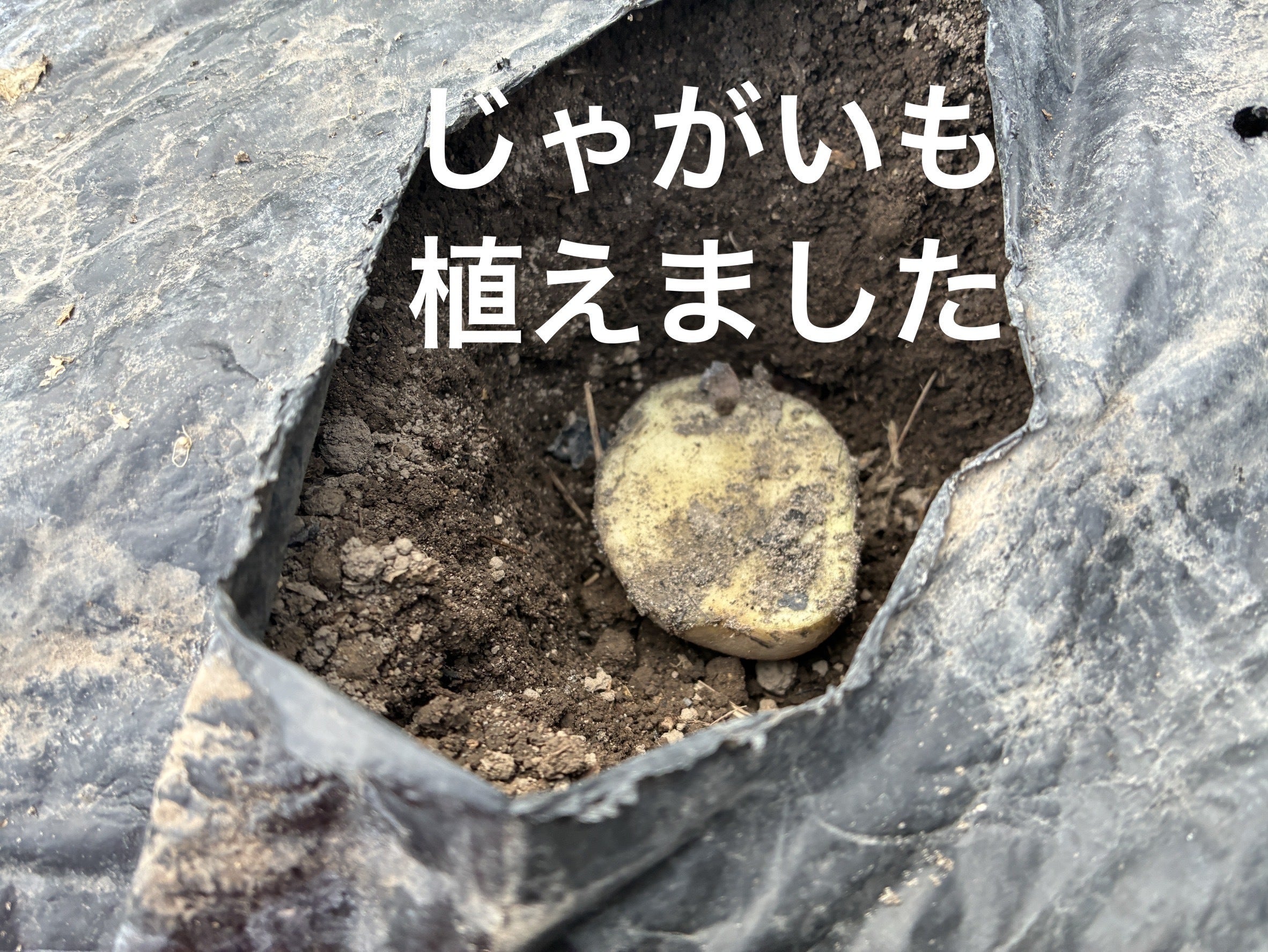 明日は雨予報、畑耕すのは時間が足りないのでじゃがいも植えました。