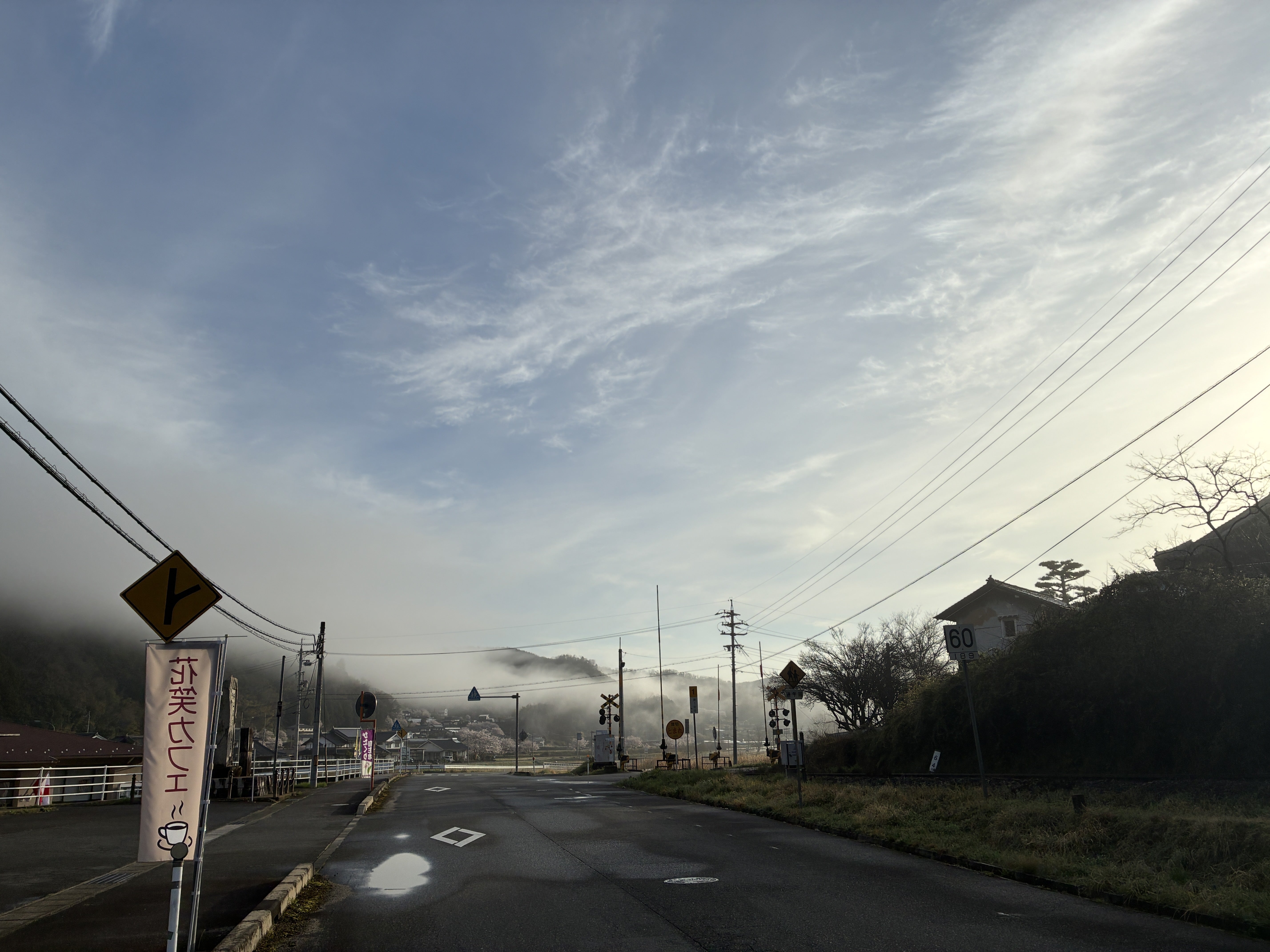 雨上がりの朝、桜は満開です。ドライブしながらカフェお待ちしております♪