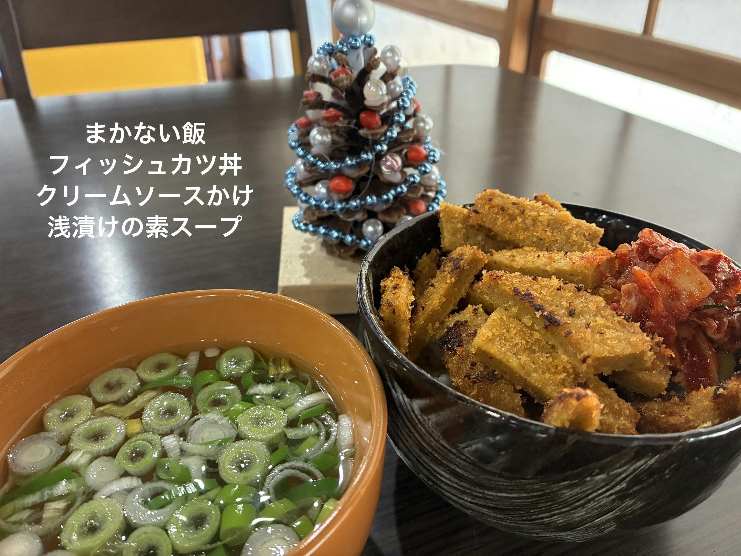 今日もフィッシュカツ丼ですがご飯が進みますまかない飯#花笑カフェ #安田マルシェ #まかない飯 #フィッシュカツ