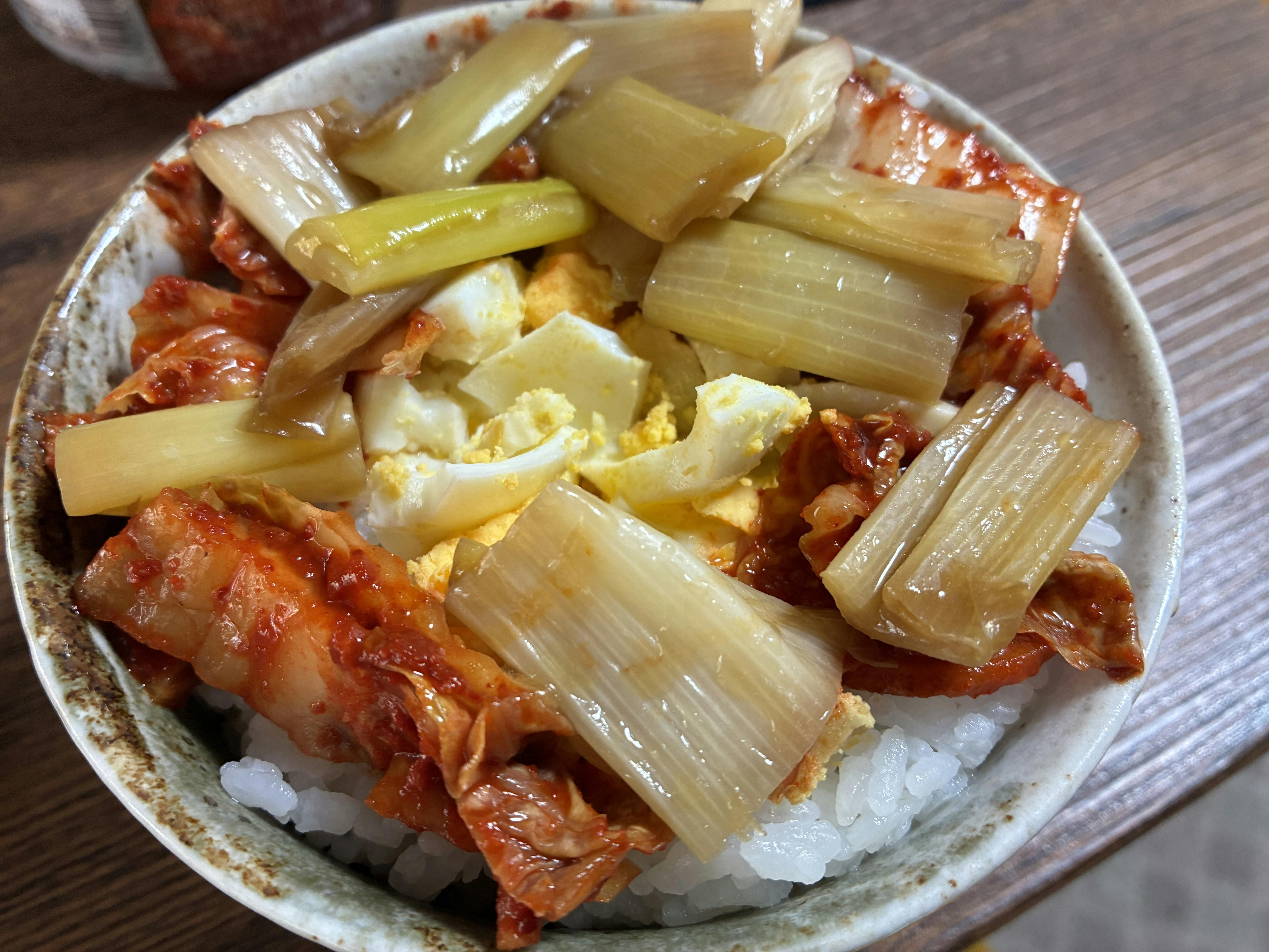 ゆで卵ともらったキムチを丼にしてまかない飯#花笑カフェ #安田マルシェ #まかない飯 #ゆで卵キムチ丼