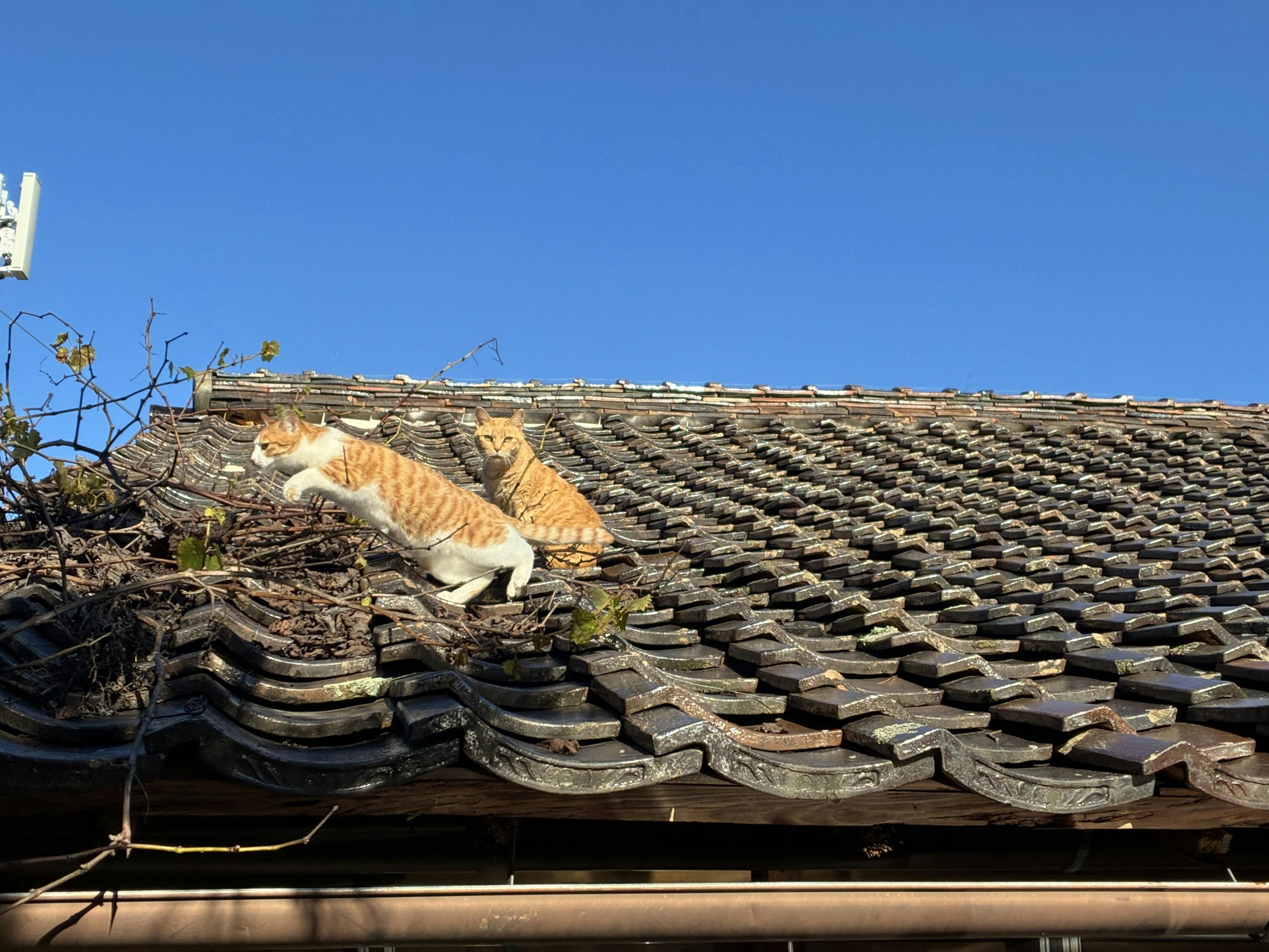 すげー睨んでるけどこの屋根はカフェの屋根やぞ#花笑カフェ #安田マルシェ #猫