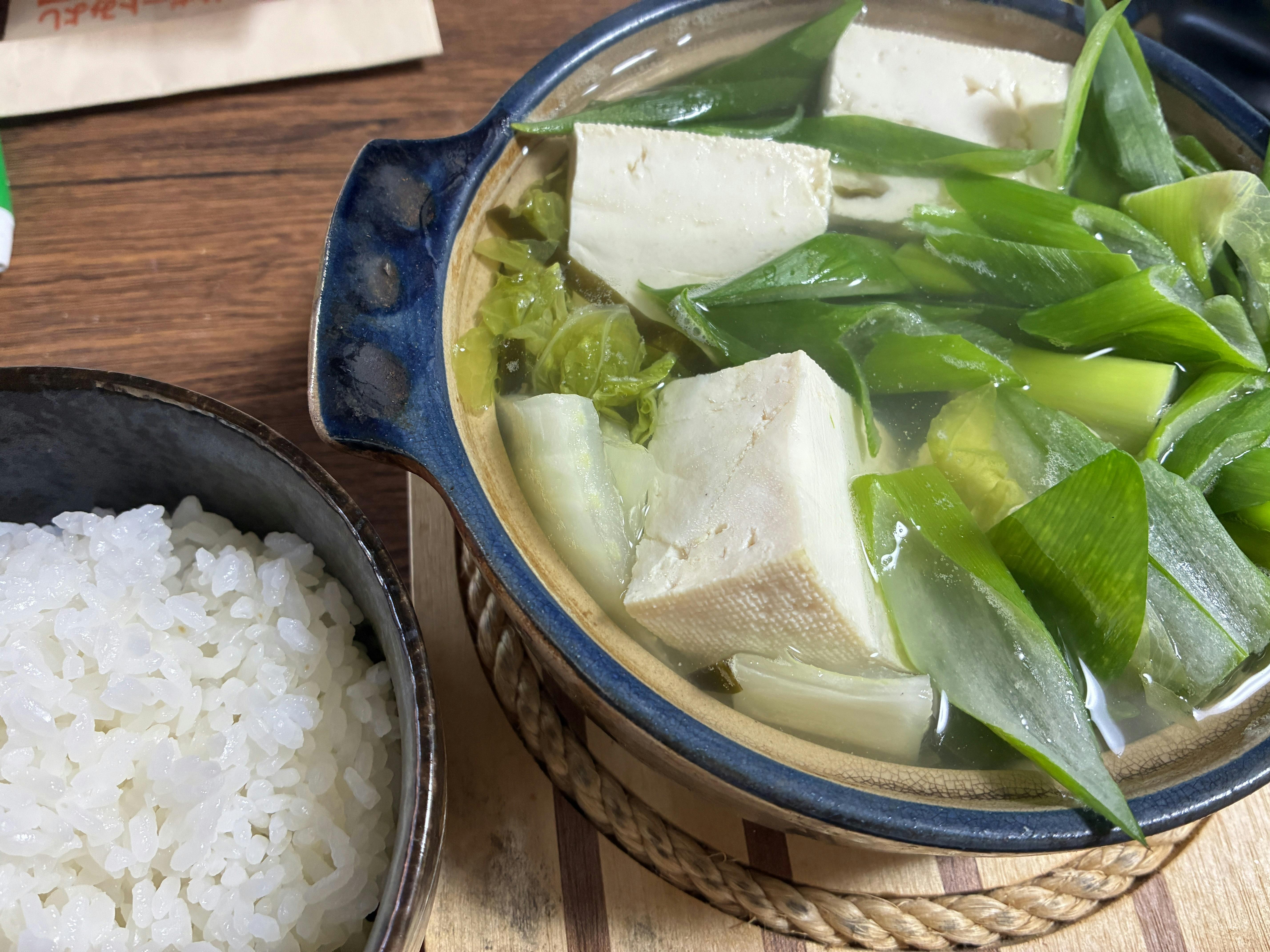 もらった葱の白いところは惣菜に、私は緑のところが意外と好きまかない飯鍋に#花笑カフェ #安田マルシェ #まかない飯 #鍋 #葱