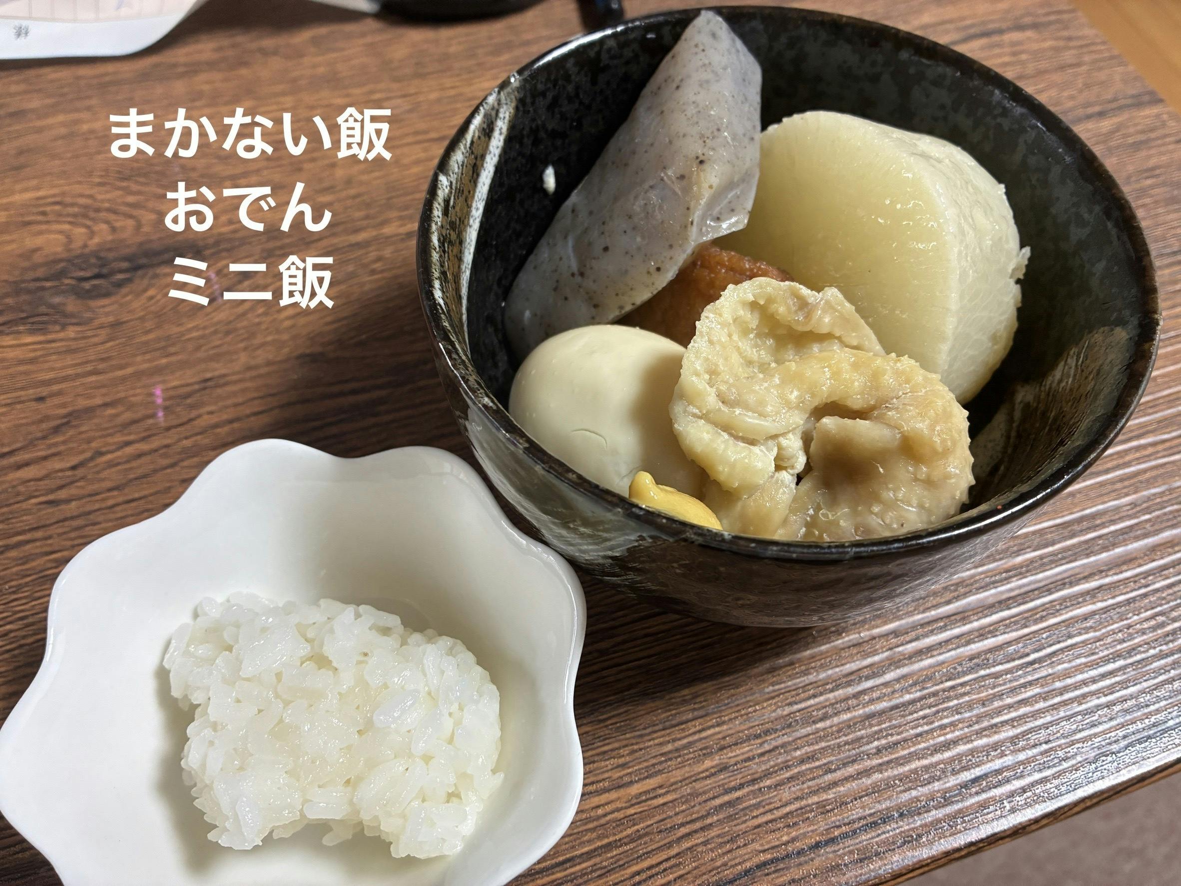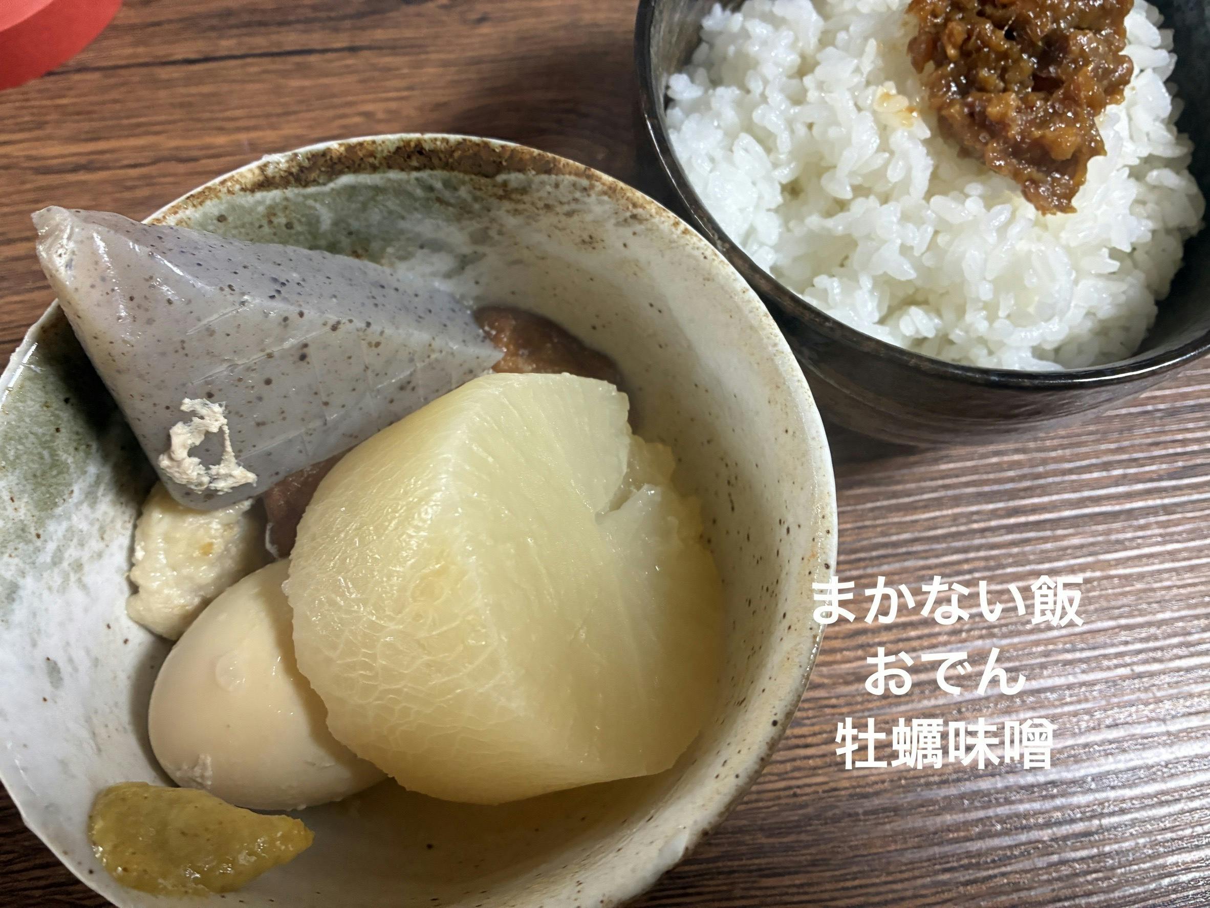 おでん大根抜いたのでおでん。ご飯は仏さんまんまほどまかない飯。最近不人気まかない飯写真#花笑カフェ #安田マルシェ #まかない飯 #おでん