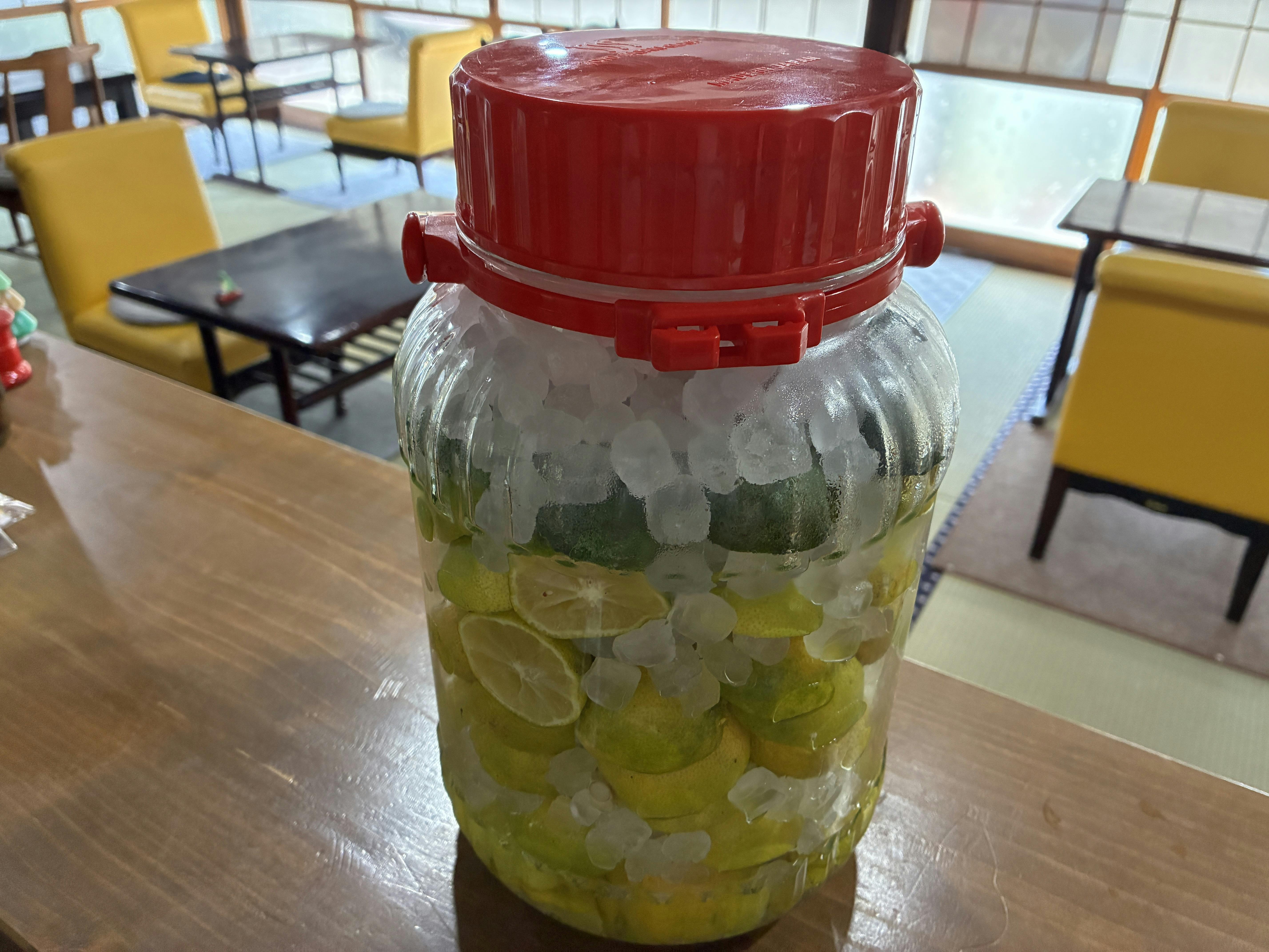カフェジュースで一番人気のスダチジュースの在庫がなくなりました。急いでスダチシロップ漬けしてます#花笑カフェ #安田マルシェ #スダチジュース #スダチ