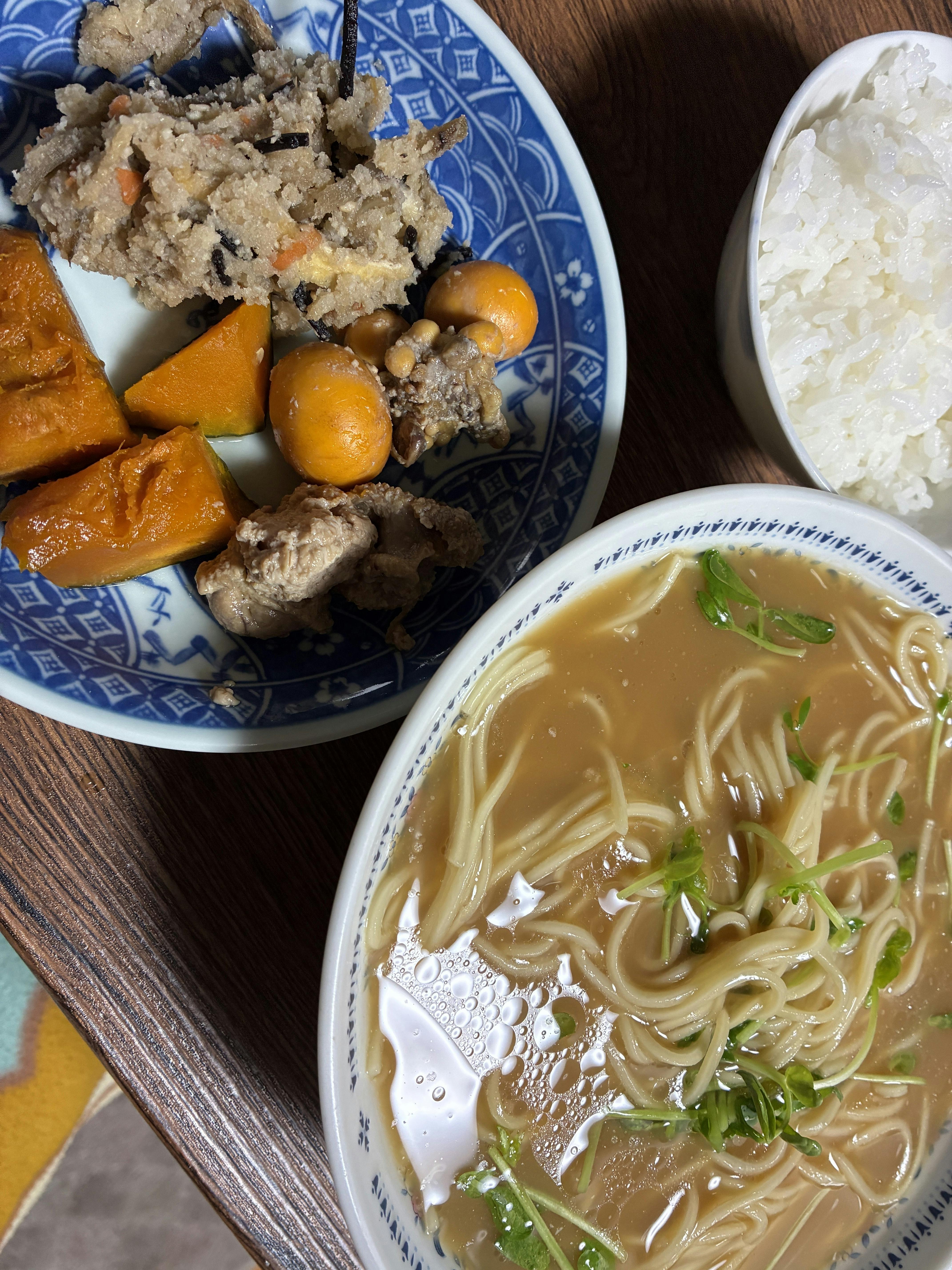 寒いので今日は暖房入れました。まかない飯も徳島ラーメンと明日のビアガーデンつまみの味見で#花笑カフェ #安田マルシェ #まかない飯 #徳島ラーメン