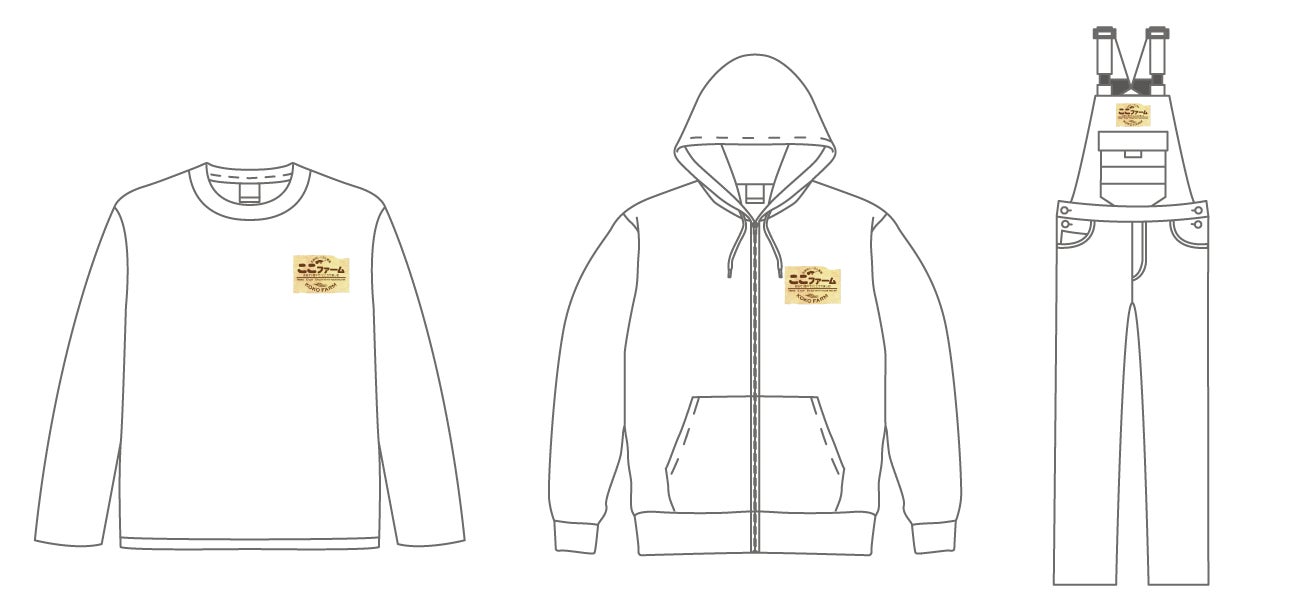 また、KOKO FARMのオリジナルロゴが入ったTシャツ、パーカー、オーバーオールもお届けします。
