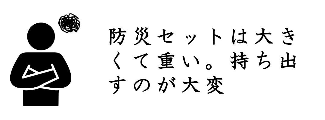 しかし、既存の防災バックでは「大きすぎて玄関に備えるのが難しい」と感じたり、「玄関が狭くなるので防災バックを置くのは避けたい」といった方がいらっしゃるのではないでしょうか。