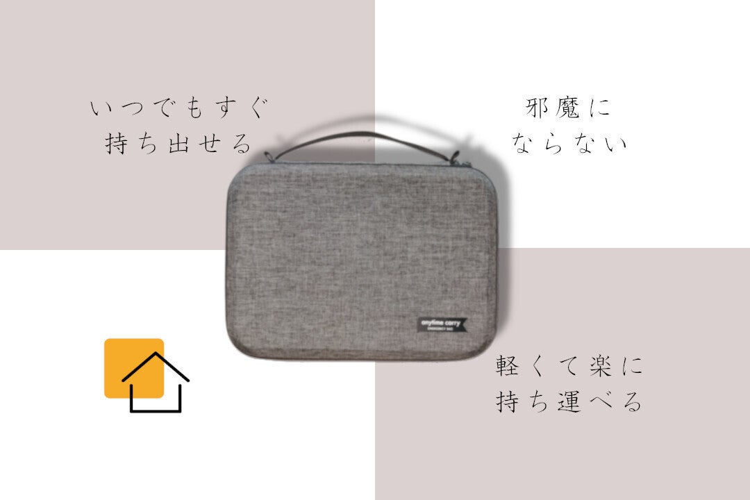 anytime carryの防災バックは玄関以外にも様々な場所に設置可能。