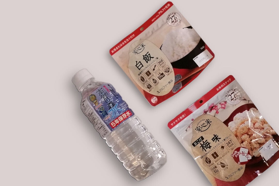 災害発生直後は避難所も混乱しておりすぐに食料の配給が行えない場合も。そのため食料と水を搭載。長期保存可能。