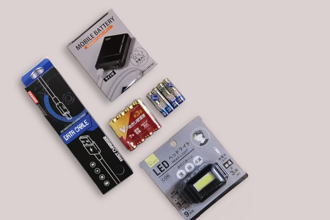 現代のライフラインであるスマホ。災害時は情報収集や安否確認で利用します。そのためモバイルバッテリーは必須です。乾電池式の充電器を搭載。うっかりモバイルバッテリーの充電忘れを回避するために乾電池式をチョイス。3in1ケーブルであらゆる機種のスマホに対応。災害時の停電に備えヘッドライトも搭載。