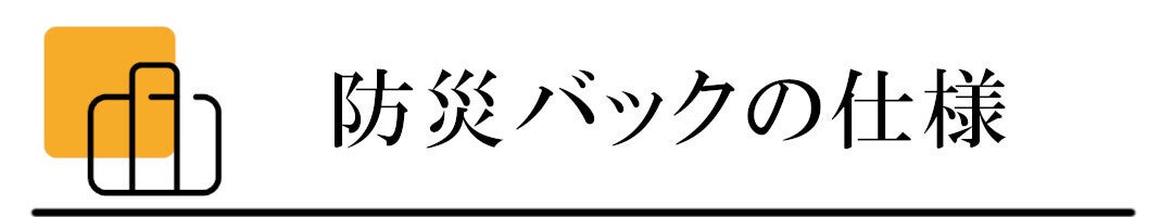 搭載する防災グッツは人により必要なモノが大きく変わります。性別・年齢・居住地域の気候など。ご自身に適した防災グッツを用意することが大切です。一からご自身で防災グッツをカスタマイズして防災バックに詰めることもご検討ください。