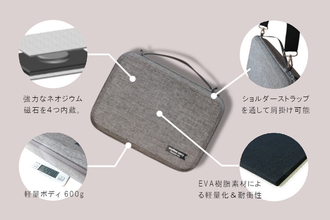 そこで開発したのが玄関のドアに磁力で張り付く防災バックです。スペースがなくても設置でき、いつでもすぐ持ち出せる利便性を備えています。