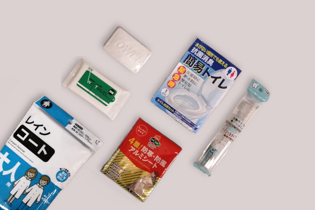 避難行動、避難所生活で必要になる防災グッツを搭載しています。