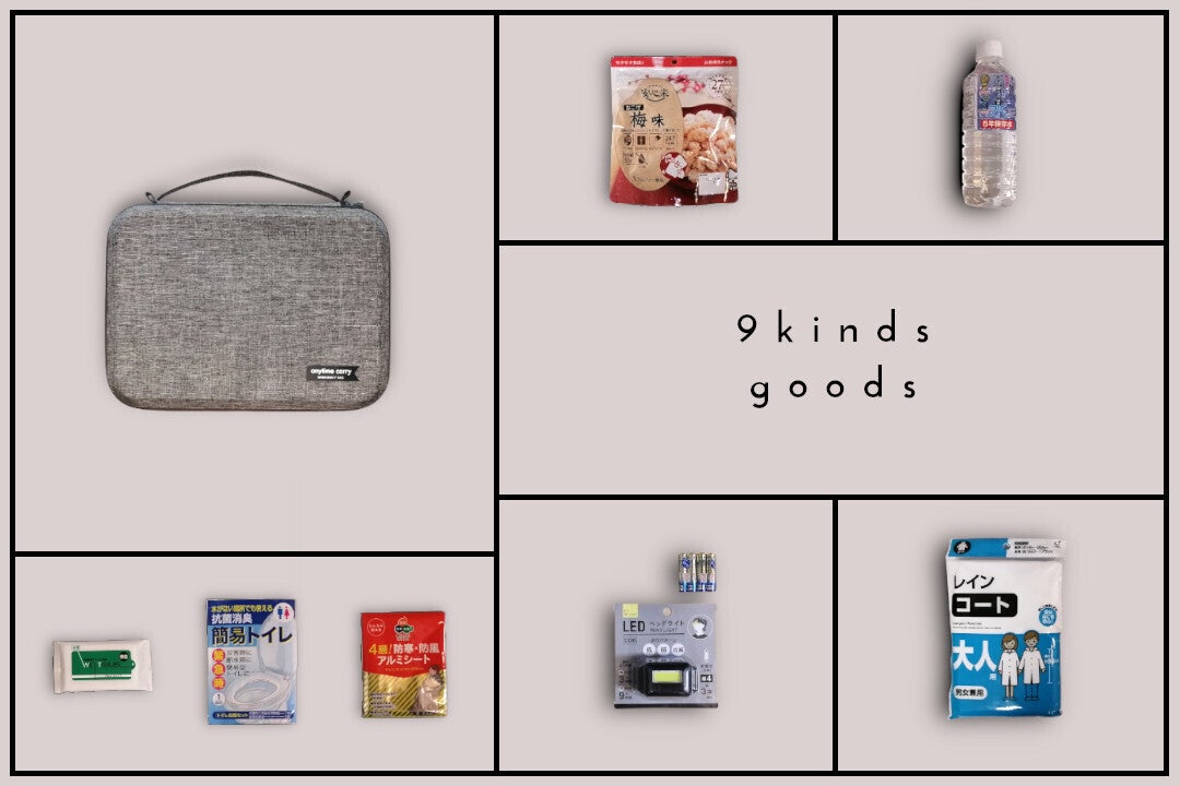他にも9種の防災グッツに限定した「9種パック」、自身で防災グッツをフルカスタマイズするための防災バック単品の取り扱い始めております。
