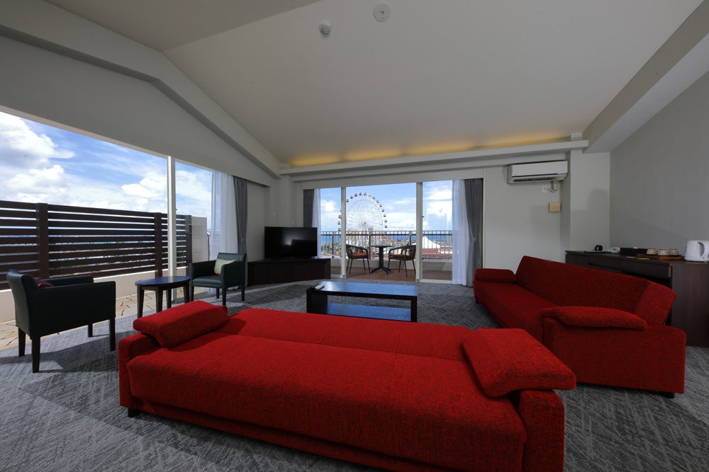 2019年にこれまでのリビングとベッドルームが完全には分離していないジュニア スイートルームから、ベッドルームを完全にリビングから独立させたスイートルームへと部屋のレイアウト変更する大きくリニューアルをおこないました。これによりベッドルームでお休みいただく時間とリビングルームでおくつろぎいただく時間の両方でご満足いただけるお部屋の整備は整いました。