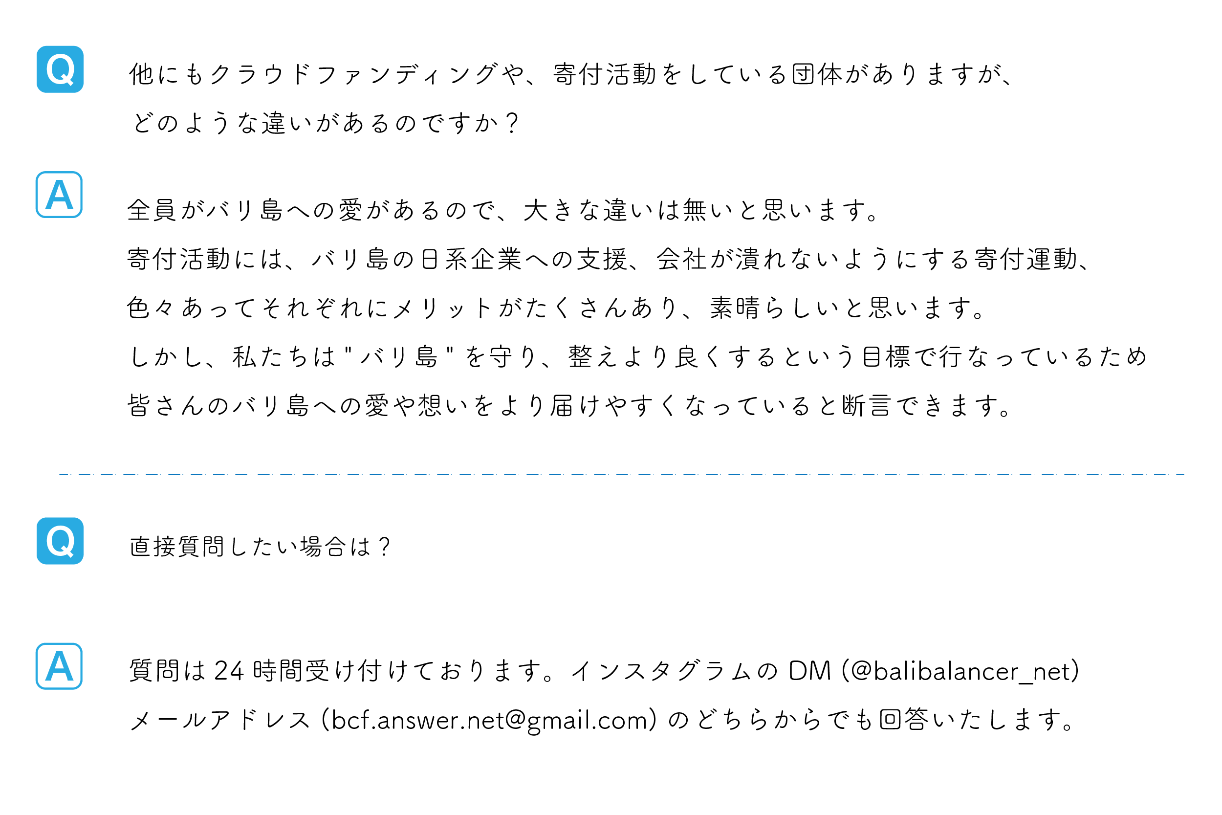 2021/04/19 15:12.\ご支援、ご拡散本当にありがとうございました!/こんにちは!Bali Balancerの、コウキ、ジン、イツキです!3月20日からスタートしたクラウドファンディング。たくさんの人々にご支援、拡散、応援いただきました。そして、4月17日をもって、終了いたしました!::::::::::::::::::::::::::::::::::::::::::::::::::::::::::::2021/04/17 23:59終了支援者数 :203名最終支援金額:1,368,517円::::::::::::::::::::::::::::::::::::::::::::::::::::::::::::このクラウドファンディングは、メンバーのコウキがバリ島を救いたいという想いをイツキとジンに相談したことがきっかけで、スタートしました。企画した当初は、経験や実績、人脈もありませんでした。多くの方に、無謀だと思われ、実際に厳しい意見も沢山いただきました。それでも、熱意と根拠のない自信だけはありました。もちろん、僕たちも不安がなかったのかと言われれば嘘になります。そもそも、「寄付を募る…なんて…」、という気持ちもありました。ですが、せっかくやるなら、関わった人みんながハッピーになる、イベントにしたい!とスタートを切りました。そして、いざスタートしてみると、その不安たちは一瞬で吹っ飛びました。それは、ご支援とともに届く、たくさんの応援メッセージをいただいたからです。「バリ島が大好き!」「バリ島に訪れたことないけど、行ってみたくなった!」「若者の挑戦を応援したい!」本当に誰かに僕たちの想いが届いているんだ。そう実感した瞬間でした。そんな中、1つのメッセージが届きました。『こんな素敵な機会をくれてありがとう。』本来なら、ご支援やご協力いただいている僕たちが感謝するところを、逆にありがとうと言ってくださったのです。僕たちは感動しました。この22年間で初めての経験でした。いや、母から言われた、生まれてきてくれてありがとう。そんな素敵な言葉をもらった時に似た感覚になりました。驚きと、照れくささと、嬉しさと…また、この時に、「関わった人全てをハッピーにする」という僕たちの活動と想いへの、答え合わせをいただいたんじゃないか?そう感じました。本当にこの活動をやって良かったと思った瞬間でした。このプロジェクトには、本当にたくさんの皆様が関わってくださいました。家族や友人、SNSを通じて出会えた方々。そんな素敵な皆様が僕たちを支えてくださったおかげで、1人でも多くのバリ島の方達を救いたいという想いを、結果として表すことができました。本当にありがとうございます!これからも、大変なこともたくさんありますが、僕たちらしく、みなさんと一緒に、楽しみながら走っていきたいと思います!今後、バリ島観光業再開に向け入国と支援の準備をしながら、情報を発信していく予定です。まだ、入国日や支援予定日、支援予定地の選定などは未定なため、今後もこちらの活動報告、SNS(インスタ、ツイッター、フェイスブック)で行っていきます。27日間の僕たちの挑戦、応援をしていただき、本当にありがとうございました!まだまだ未熟な僕たち3人ですが、これからもBali Balancerをどうぞよろしくお願いします!関わってくださったすべてのみなさまへ、心からの感謝と、ありったけの愛をこめて!Bali Balancer 一同 もっと見る