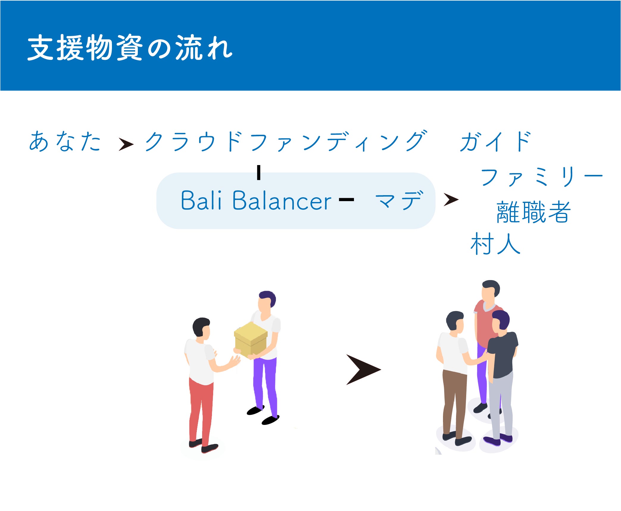 以下の流れでバリ島の皆さまにお届けします。