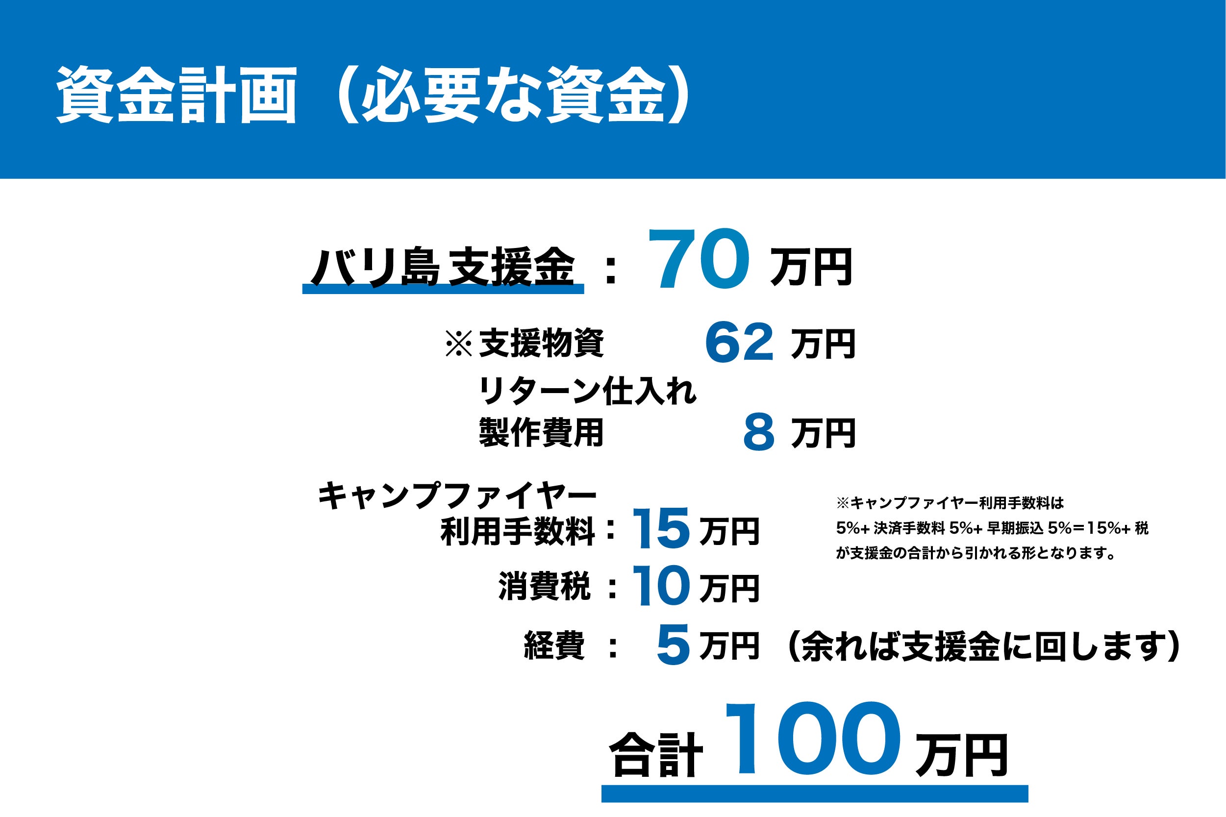 万が一、目標金額100万円に達成しない場合も