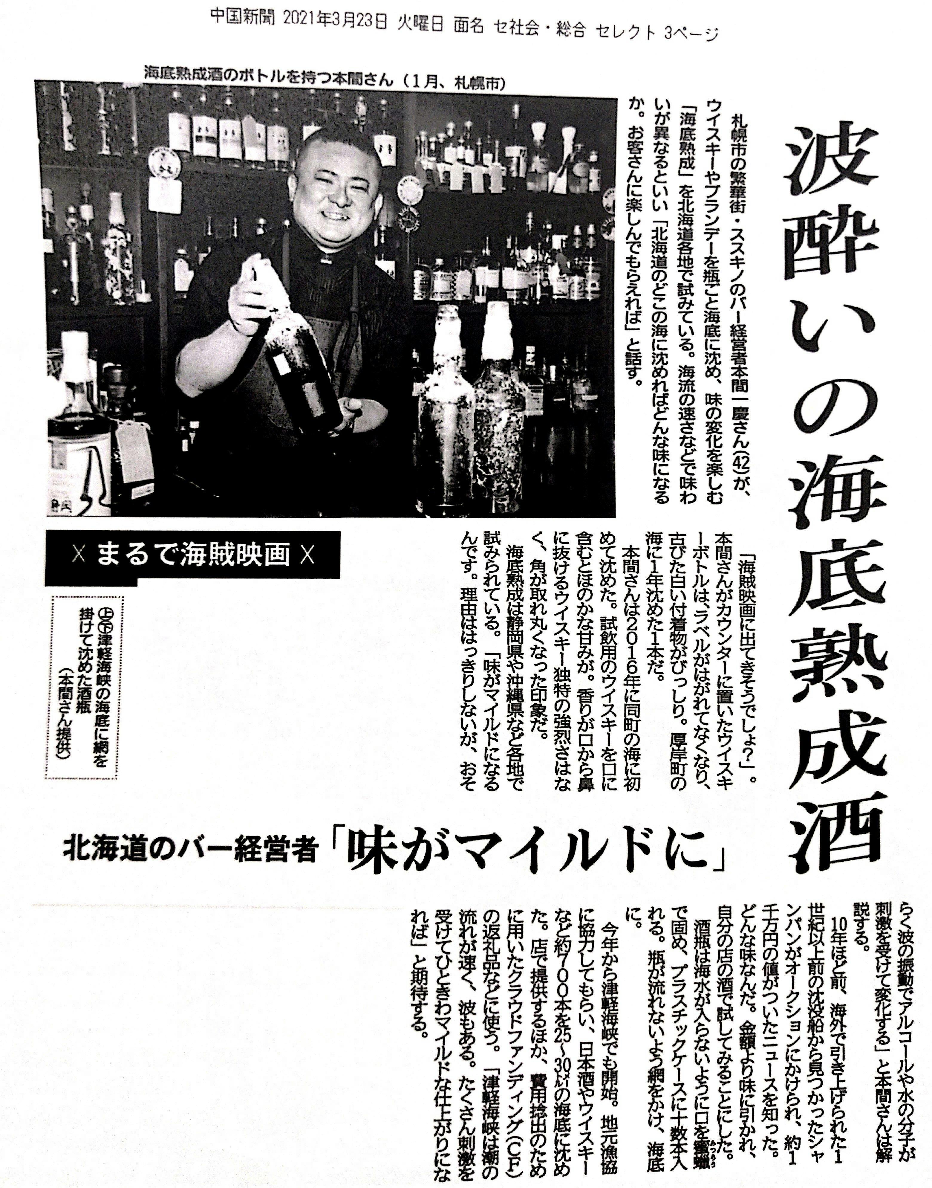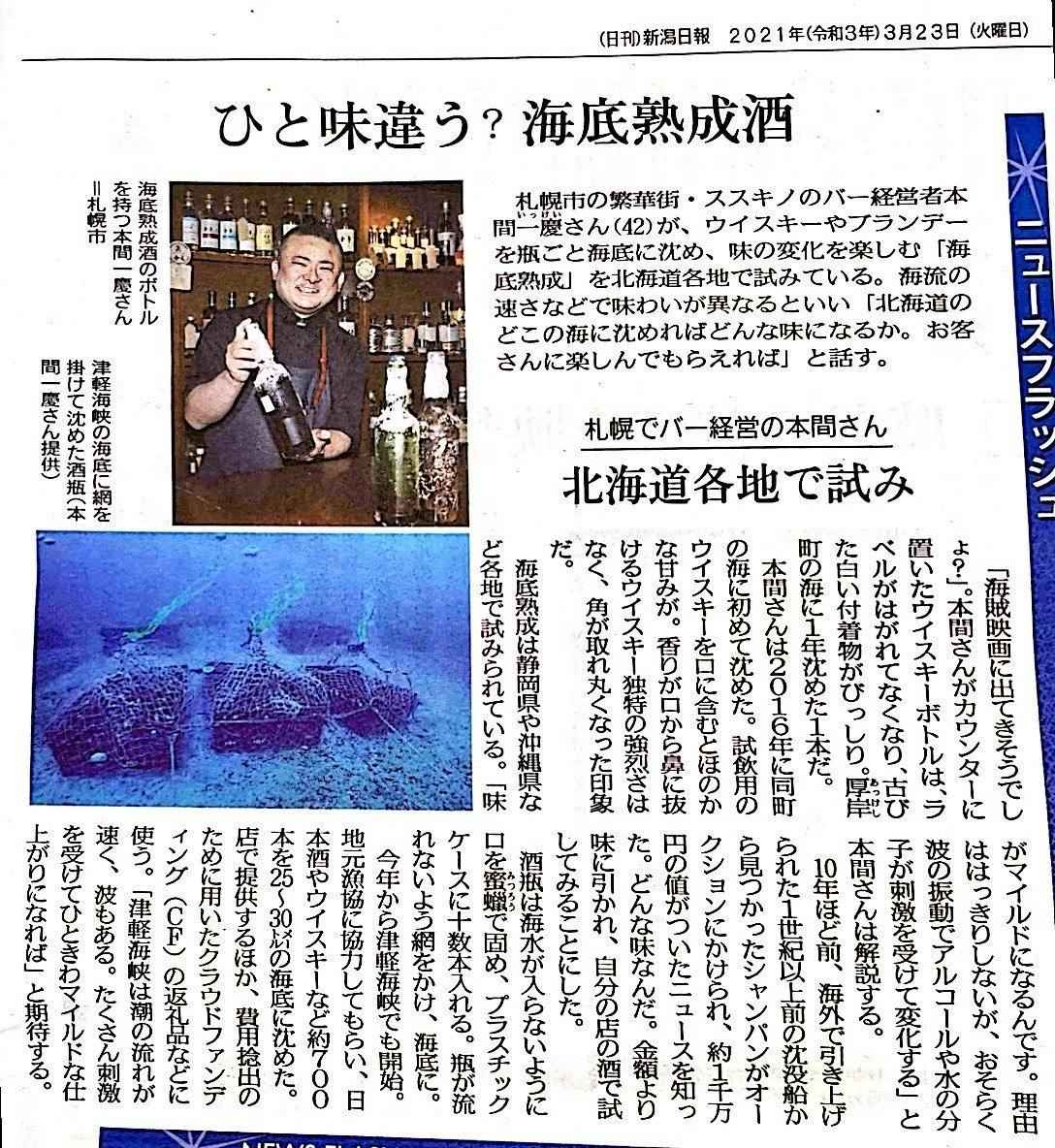 現在もBAR一慶以外で、北海道海底熟成プロジェクトによる海底熟成酒の