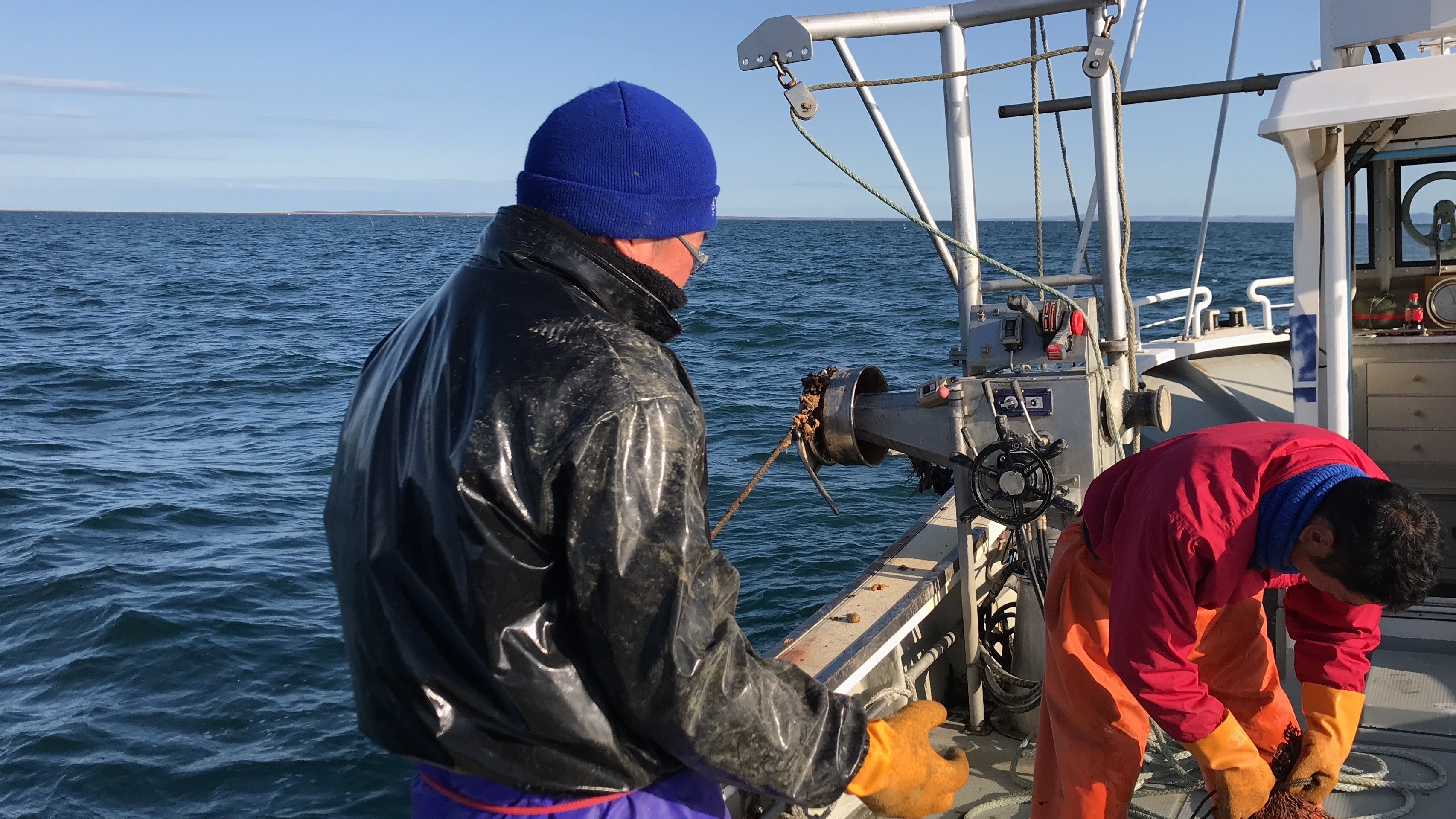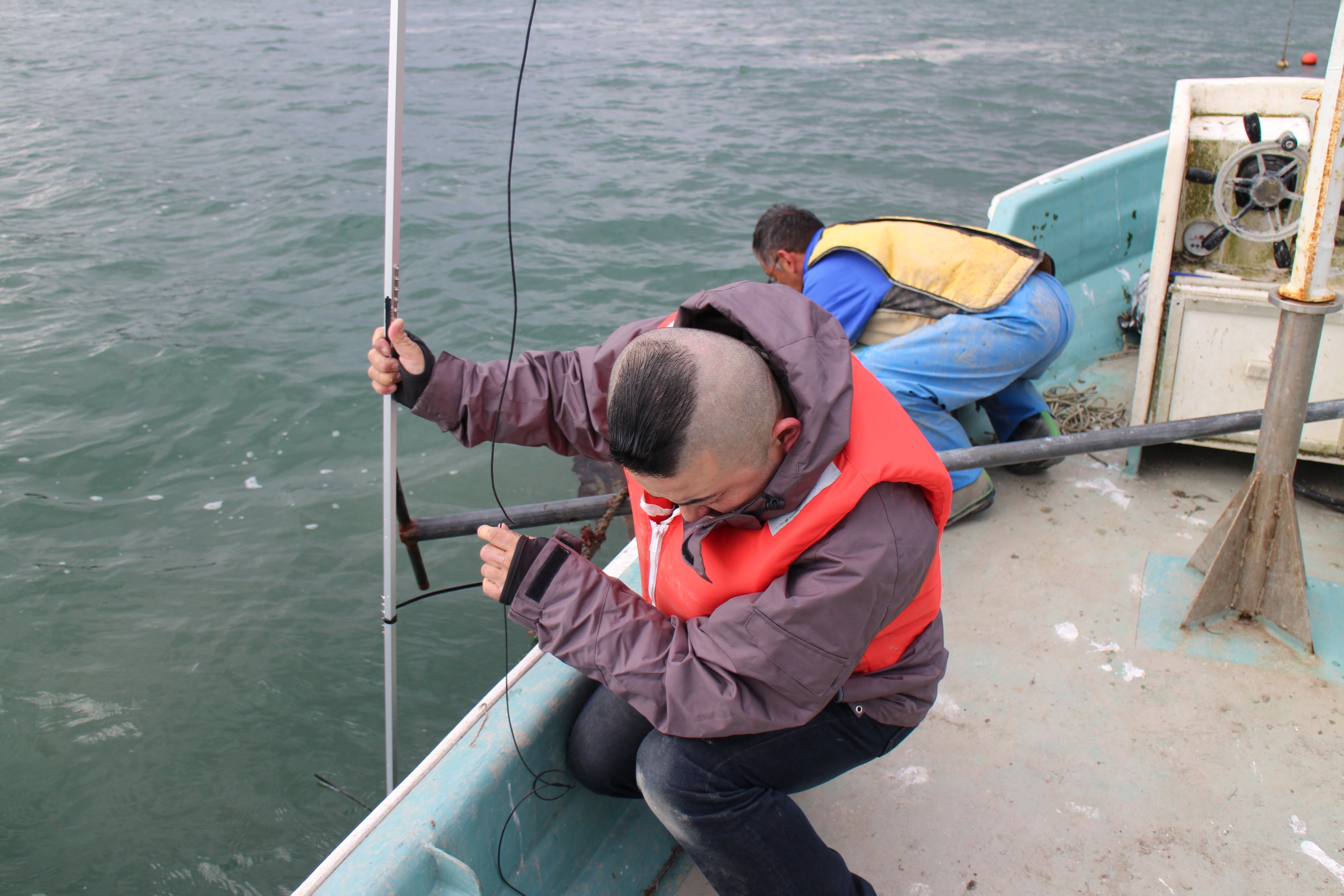 協力してもらっている漁師さんと沈め方の打ち合わせをしてます。