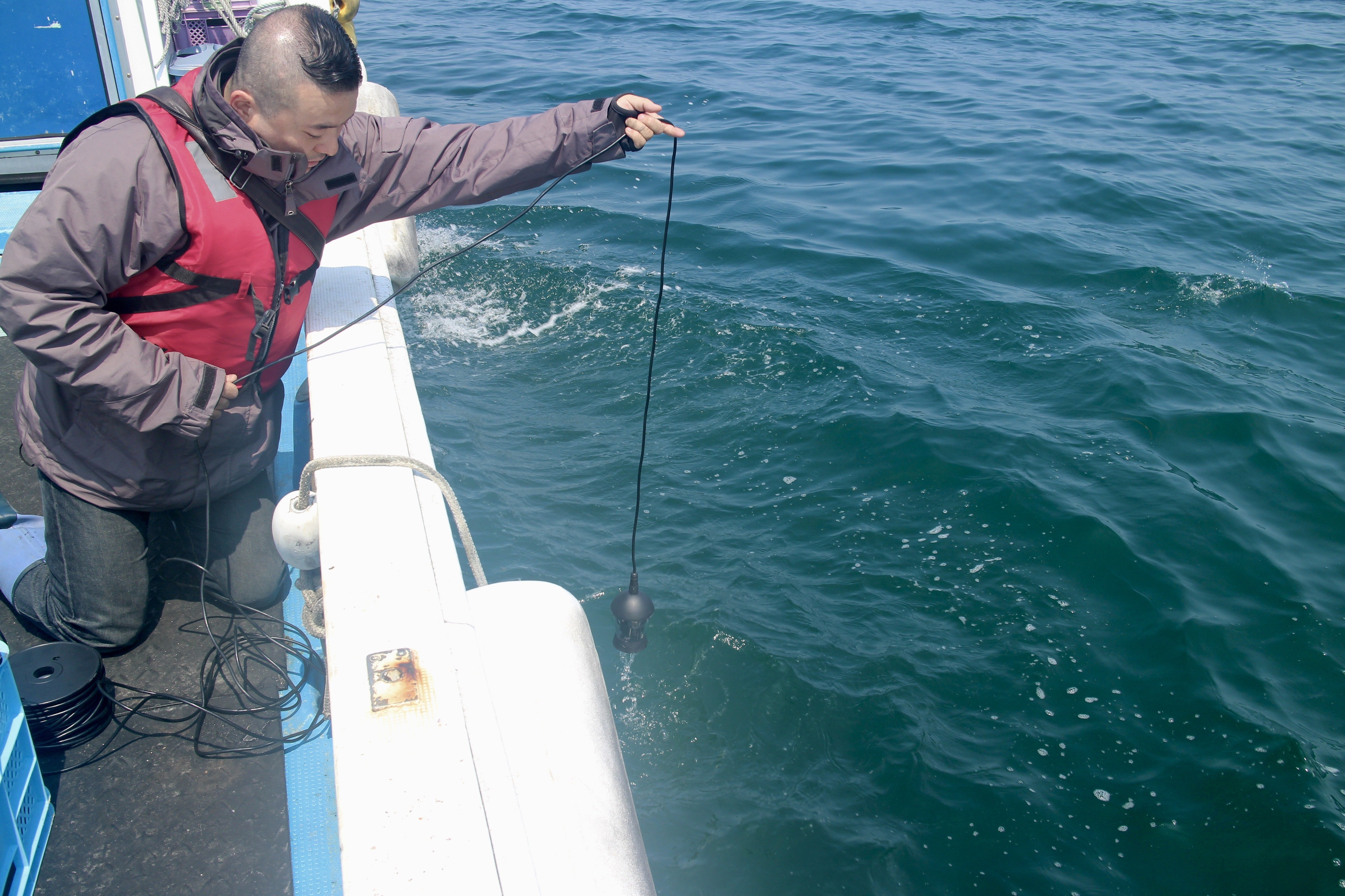 水中カメラで海底調査。