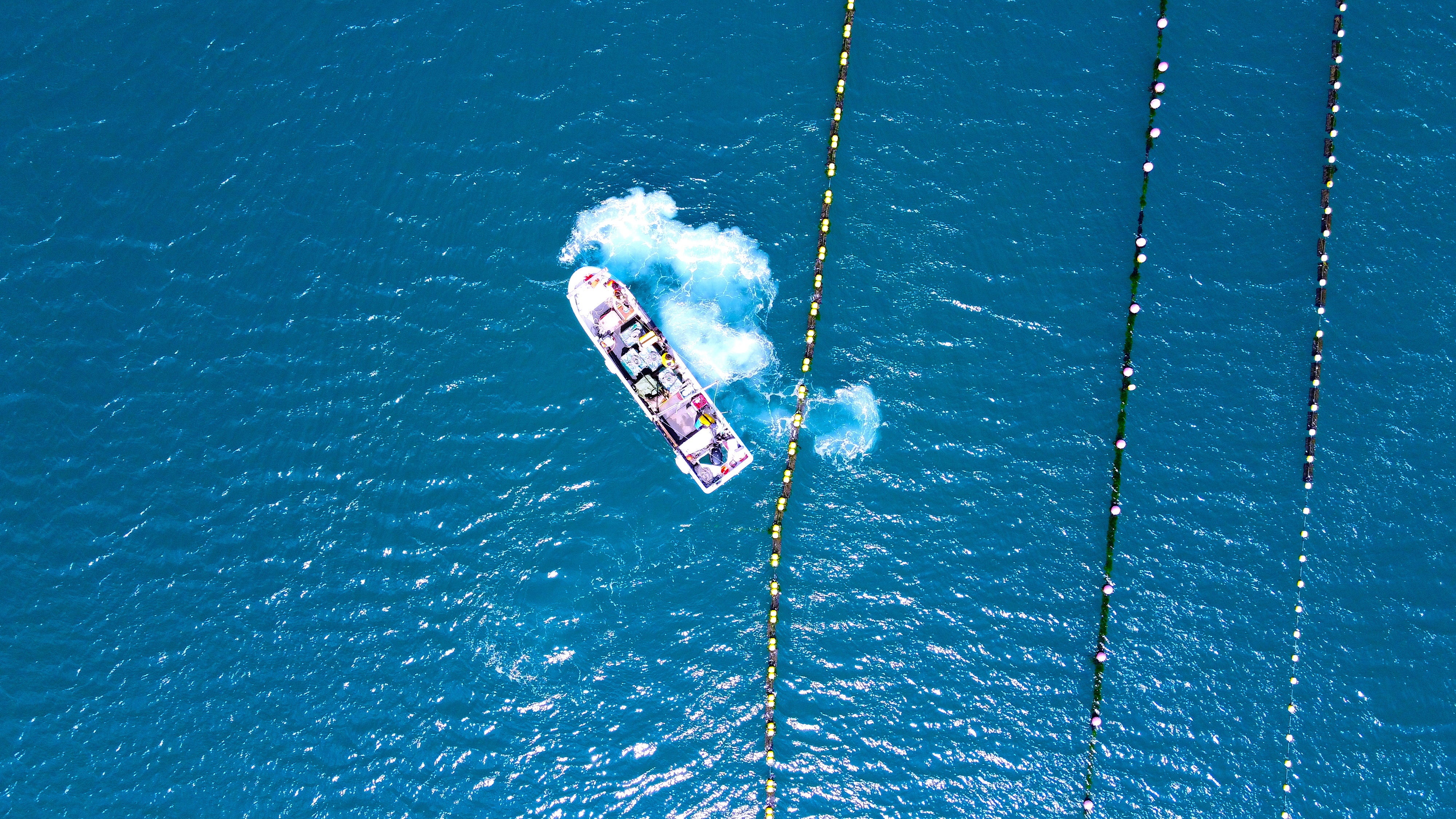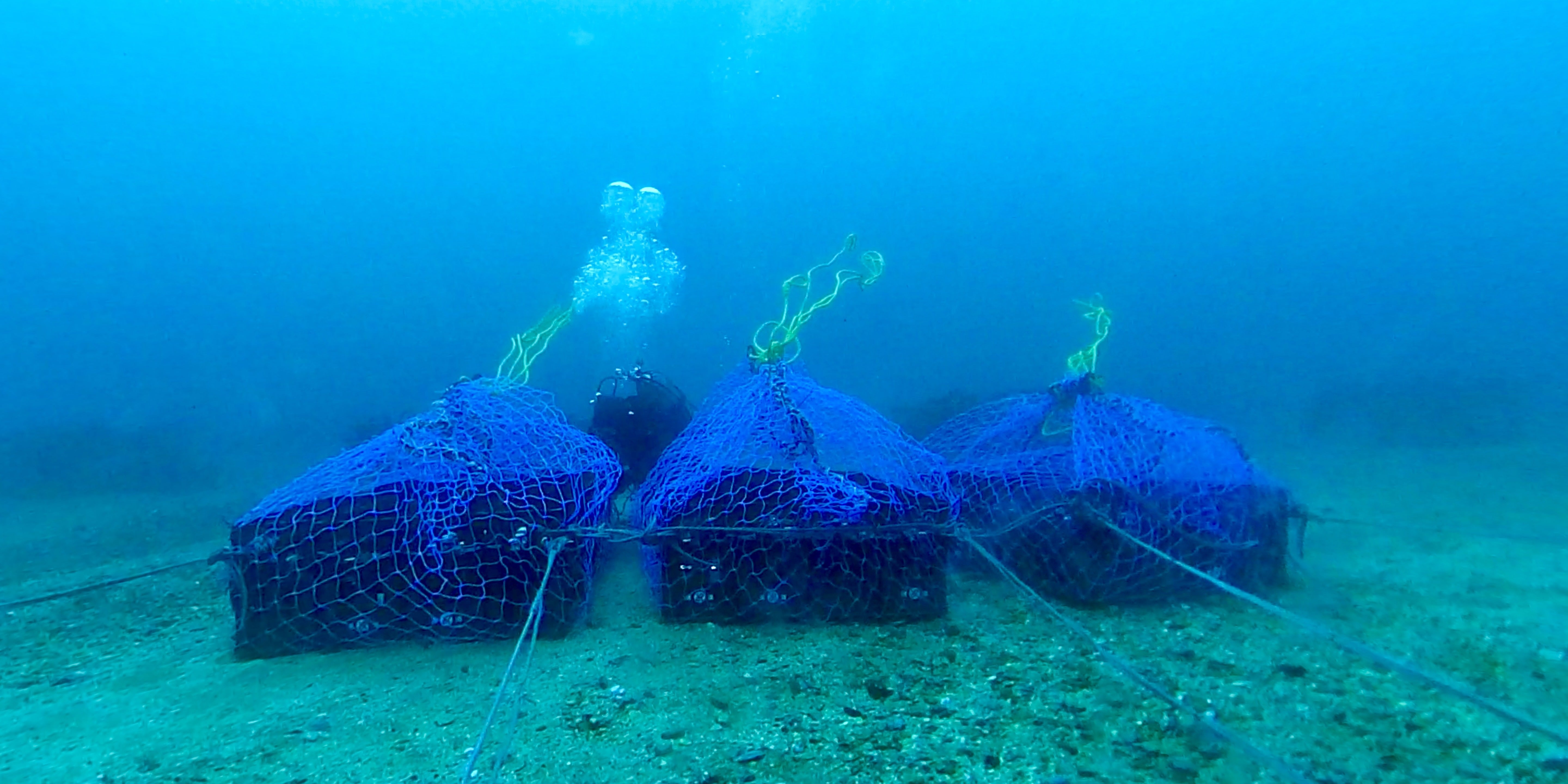 沈め方は各海域によってその都度手法が異なります。潮の流れや地形など様々な要因に合わせてその海に合わせます。