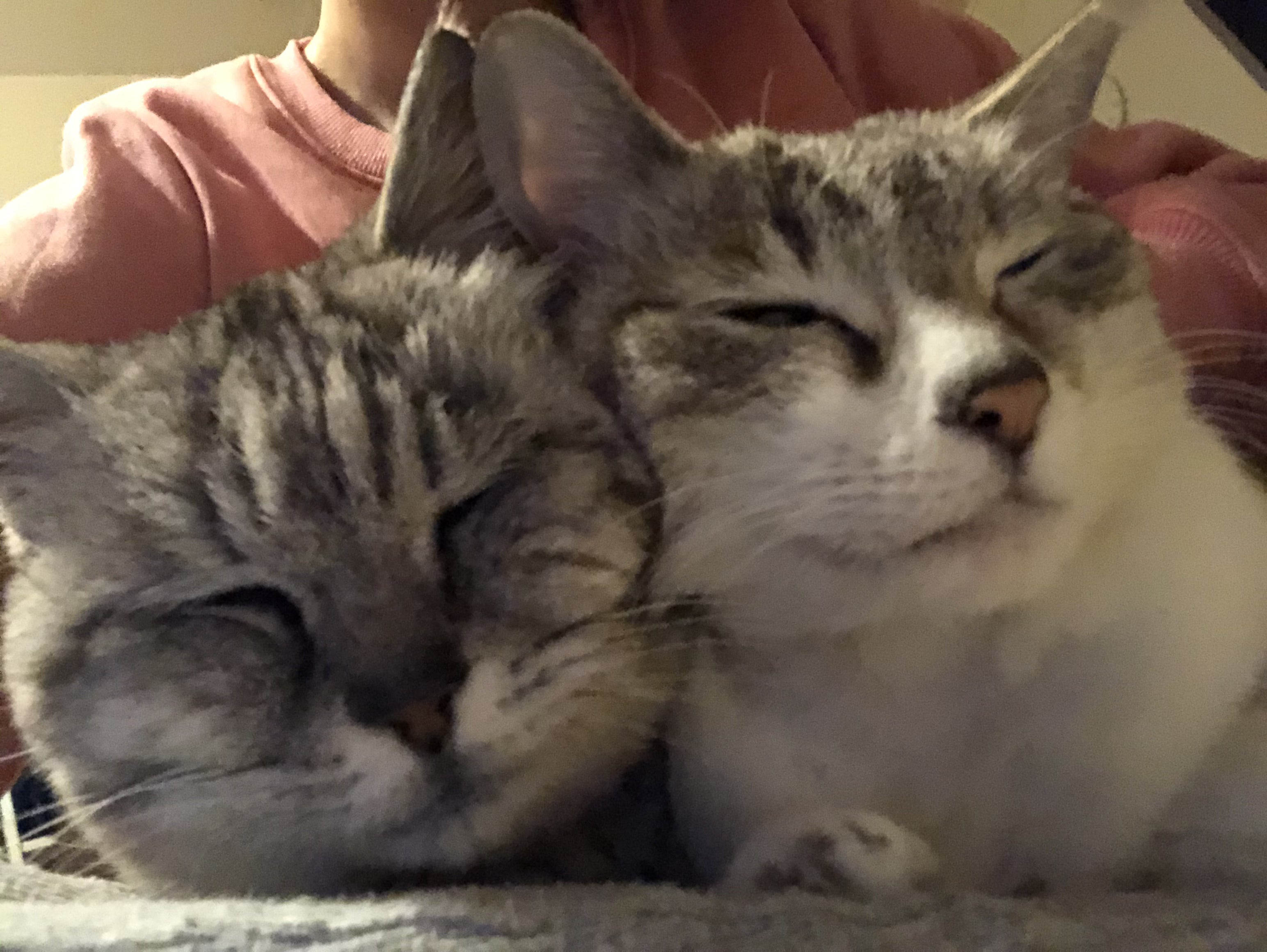 ピッタリくっついて眠り、お互いのお顔をぺろぺろしています。