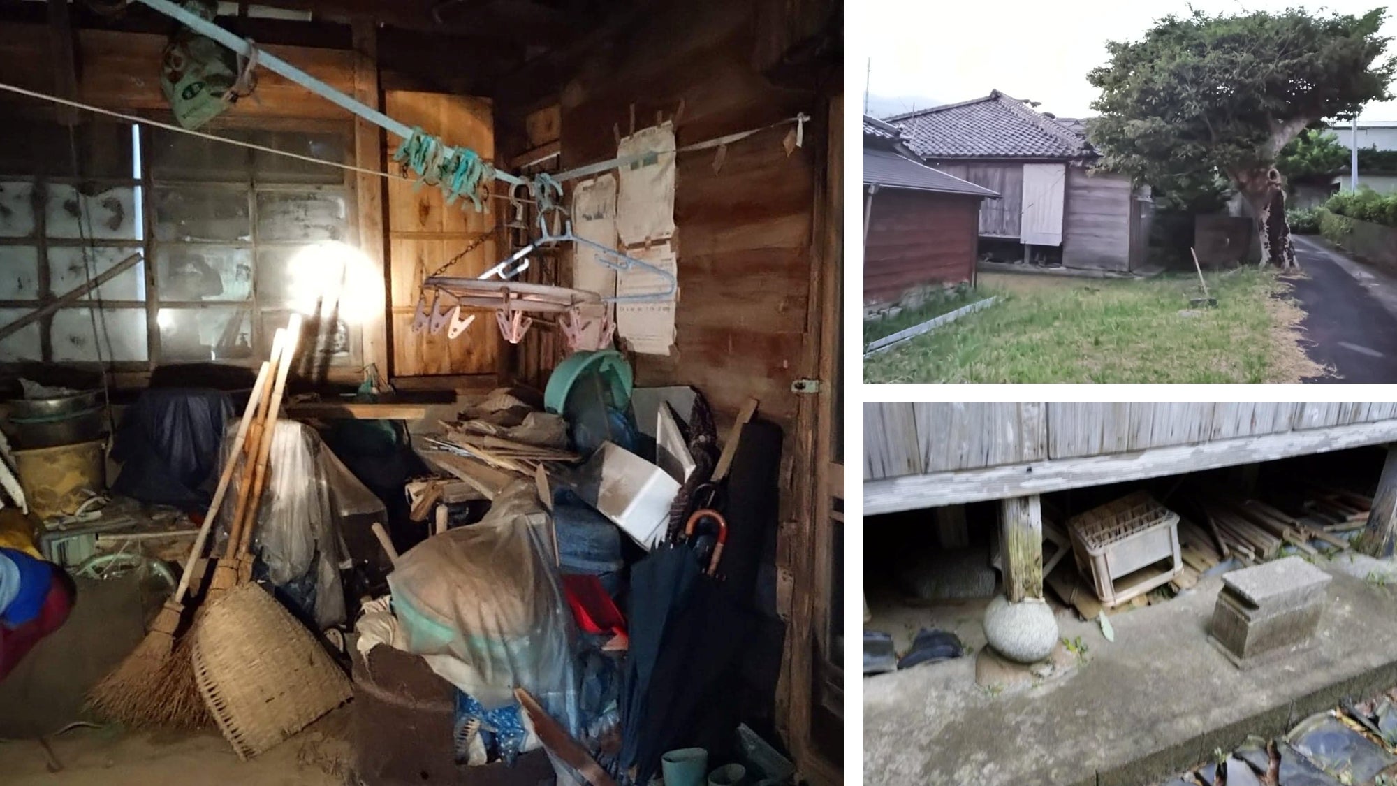 そして今回は、この空き家をリフォームする前の状態で写真展をやろうと思っています!今は粗大ゴミは破棄しましたが、畳なども昔のままでぶよぶよの状態です。ここを今後リフォームしていく予定なのですが、古く大きな家なので、地域にはその家に想い出がある方も多くいます。そういった方々に改修前に当時を思い出して頂きたいという思いもあってこの状態の空き家で写真展をやろうと思いました!また、改修後にみんなで喜びたいので、どうせならビフォーアフターのビフォーを見てもらいたいという思いもあり、家だけでなく敷地全部を使って写真展をやりたいと考えています!