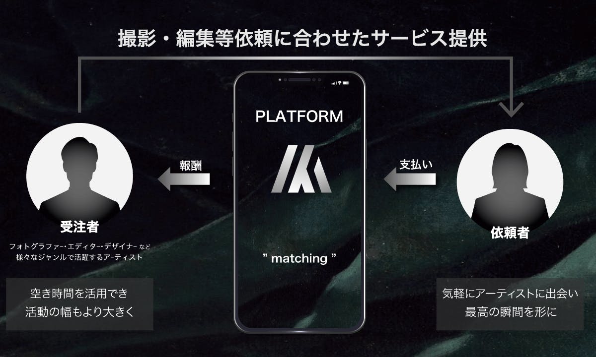 一方で依頼者においても、未知の世界と繋がることで、新たな経験やそれに伴う人々との出会いを得ることができたり、旅行を素敵な写真や映像として形に残しより良い思い出を作っていただくことができます。また自分のイメージ通りの映像や写真を撮影、制作してくれるクリエイターをより早く、安く見つけていただけるでしょう。