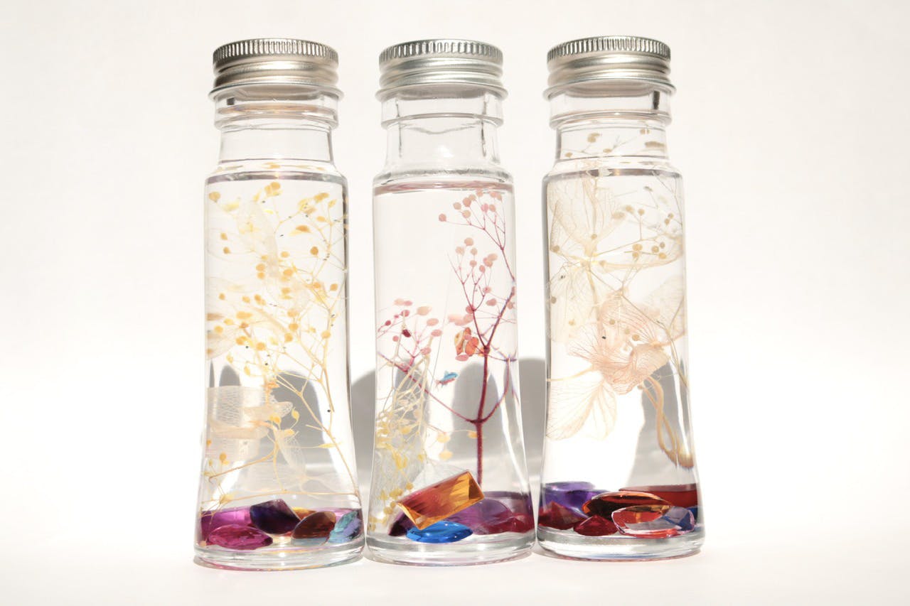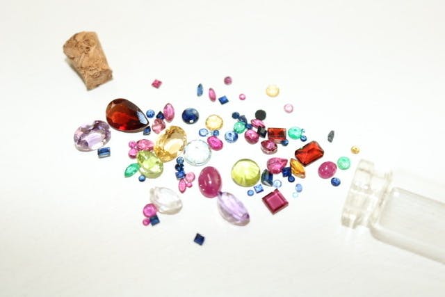 宝石を瓶に入れるだけではもったいない、使いたいけどジュエリーにするのは高額