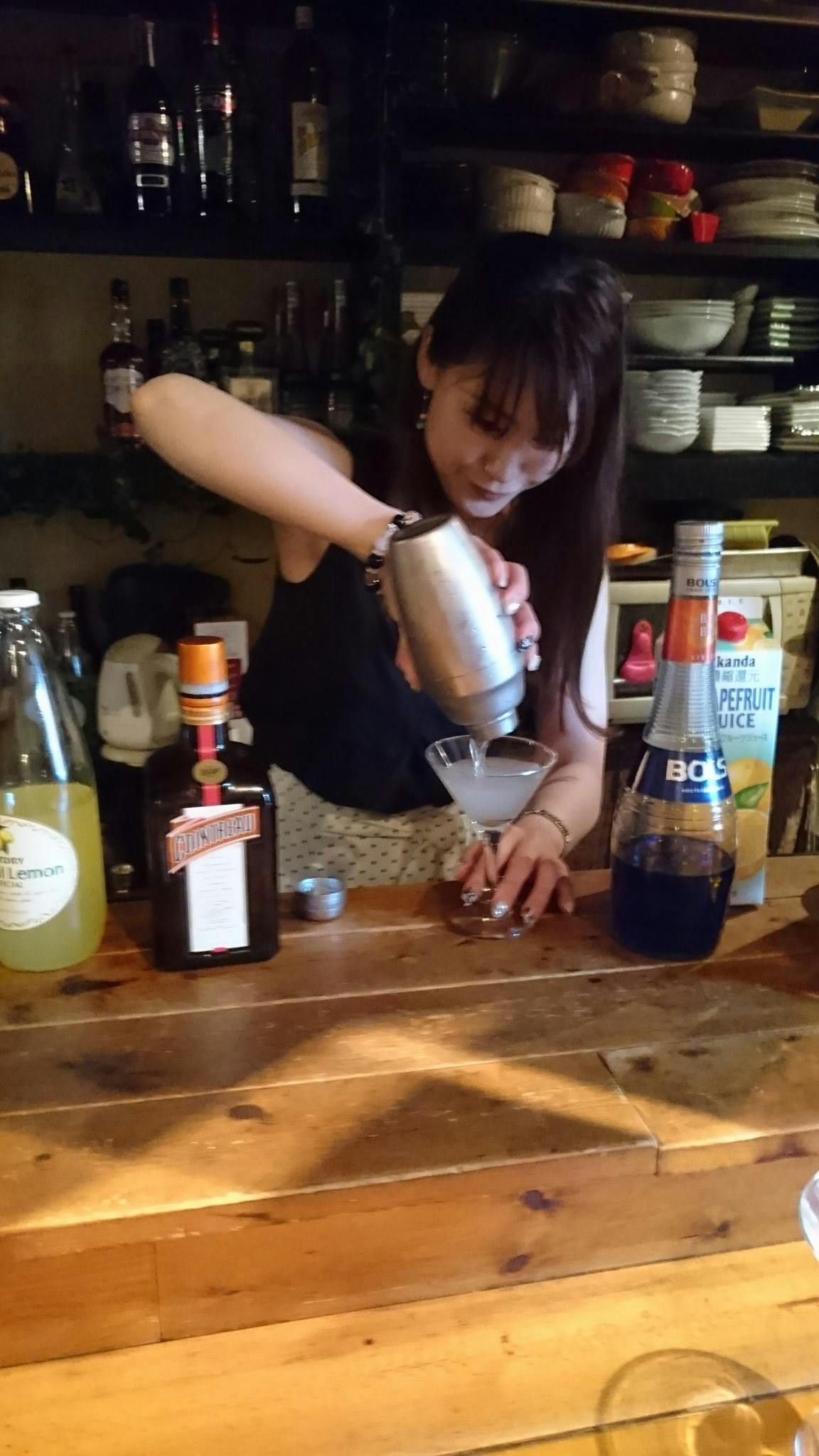 お酒の知識と創り方を簡単に学んだあとに自分が好きなカクテルを自分に一杯と 目の前にいる方の雰囲気に合わせたカクテルを一杯実際にカウンターに立って、シェイカーを使い創っていただきます。