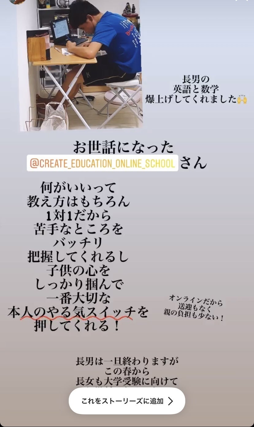みなさんこんにちは!沖縄初オンライン専門塾代表の伊藤公太です!今日はこの後、県内の塾長さんの勉強会&交流会があるので短めにご報告です^^この時期はたくさんご家庭から体験談やアンケートを頂きます。それを見て、『もっとがんばろう!』と思えるので嬉しいです^^どんな所がご家庭にとってよかったのか、そしてそれを聞いて次に活かす。塾としても、個人としてもまだまだ成長していきます!!3月は新年度のお問い合わせが本当に多いです。少しでも気になる方はお早めにご相談お待ちしております^^今日も楽しく頑張りましょ〜!【塾情報はこちら】H P:https://www.create-education-online.com/Instagram:【公式】伊藤公太《CEO沖縄初オンライン専門塾》Twitter:伊藤公太(ID @max155km)Facebook:Create Education Online 株式会社