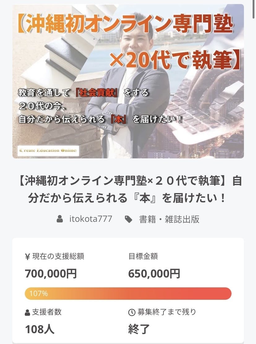 つい先日、第2回目の執筆クラファンにあたる