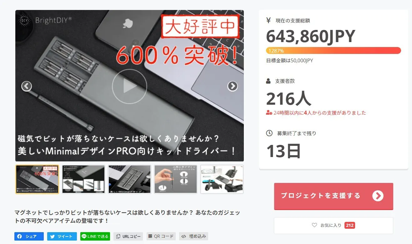 また、SNSシェアボタンよりプロジェクトをシェアしてくださった方全員に