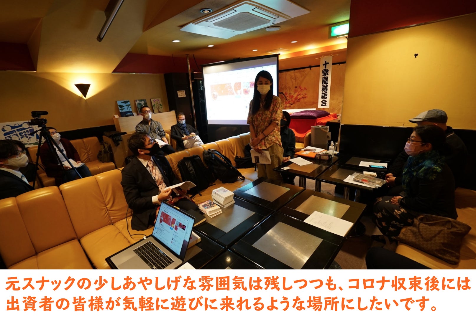 このプロジェクトでは湯島の元スナックを改装して若手アーティストが自由に制作できる共同アトリエを作りたいと考えております。あまり知られていないことですが、私たちアーティストは卒業を機に制作環境を維持することが難しくなります。大学にいるときには使用できた設備も使うことができなくなるため、色々と負担が増えます。