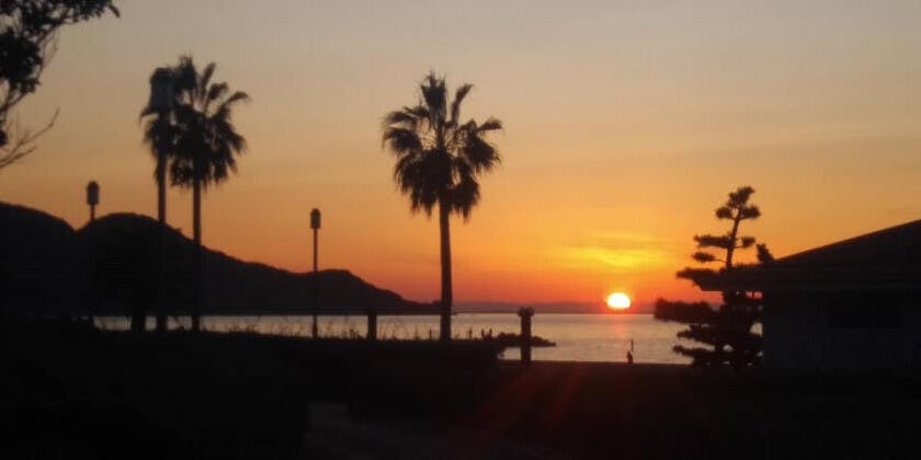お部屋から朝日と夕陽を眺めることができます ※近くの海水浴場で撮影
