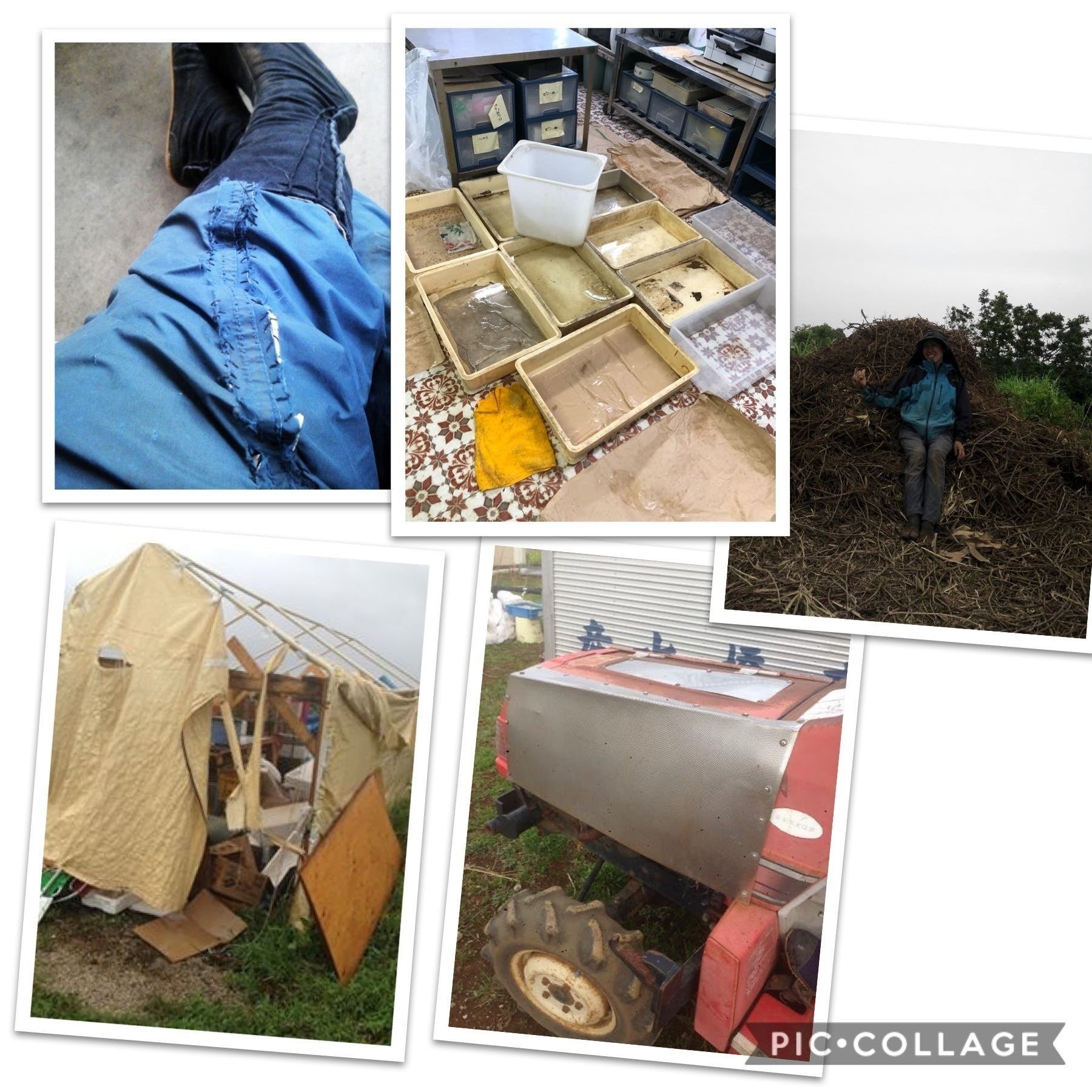 農業を始めたばかりの頃の思い出・素人参入で4人の幼子を抱えて農業をスタート当初色々な苦労がありました。↓台風に遭って小屋が6回も飛ばされました。≪写真:左下≫